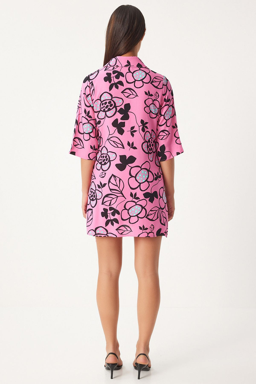 Female Pink Patterned Summer Viscose Anvelop Dress FN03226