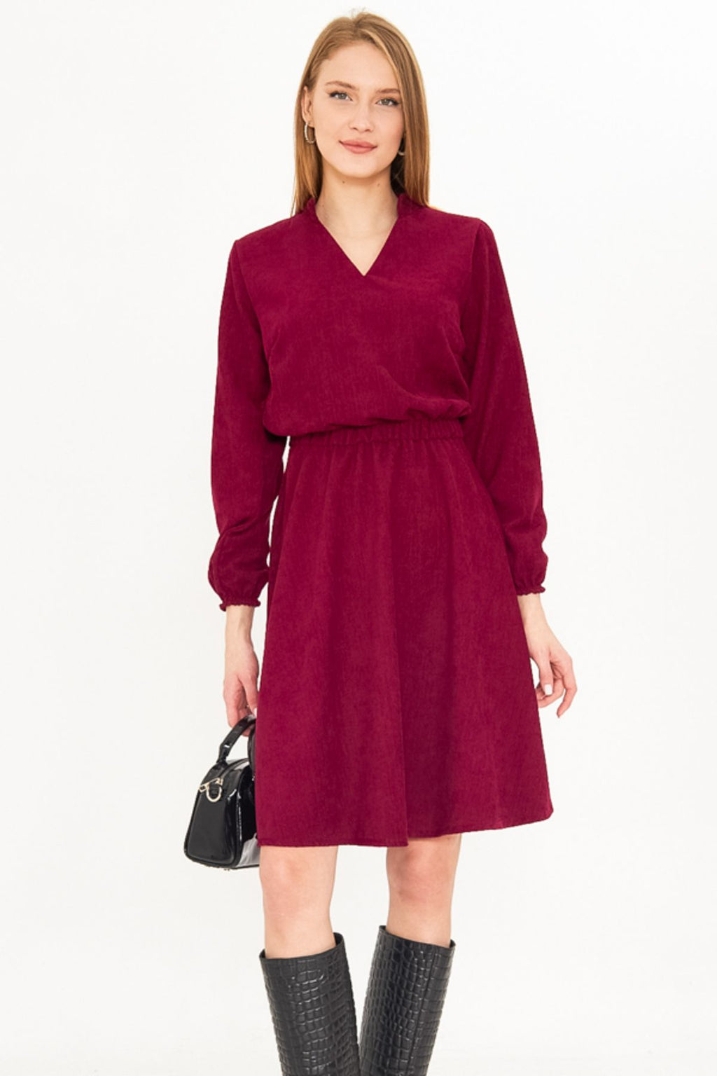 Female Plum Velvet V-Yaka Waist Fine Wick with Rubber Clash Dress ARM-25K001049