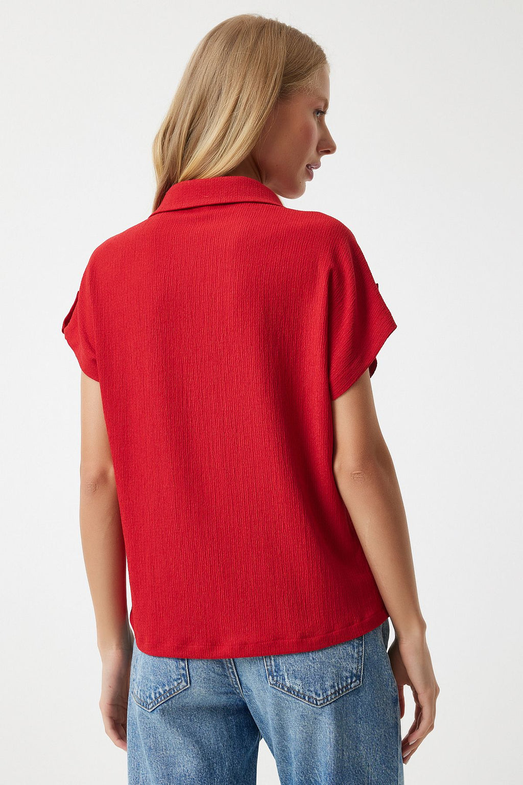 Female Red Pocket Casual Knitting Shirt DD01325