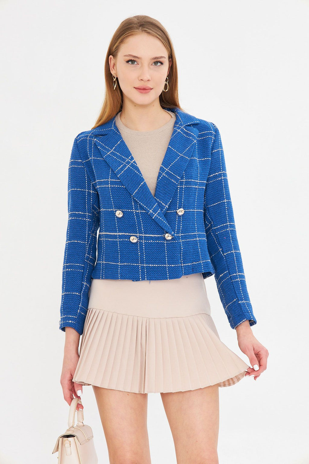 Female Saks-Bej Krovazer collar Tüvit Crop jacket ARM-24K001014