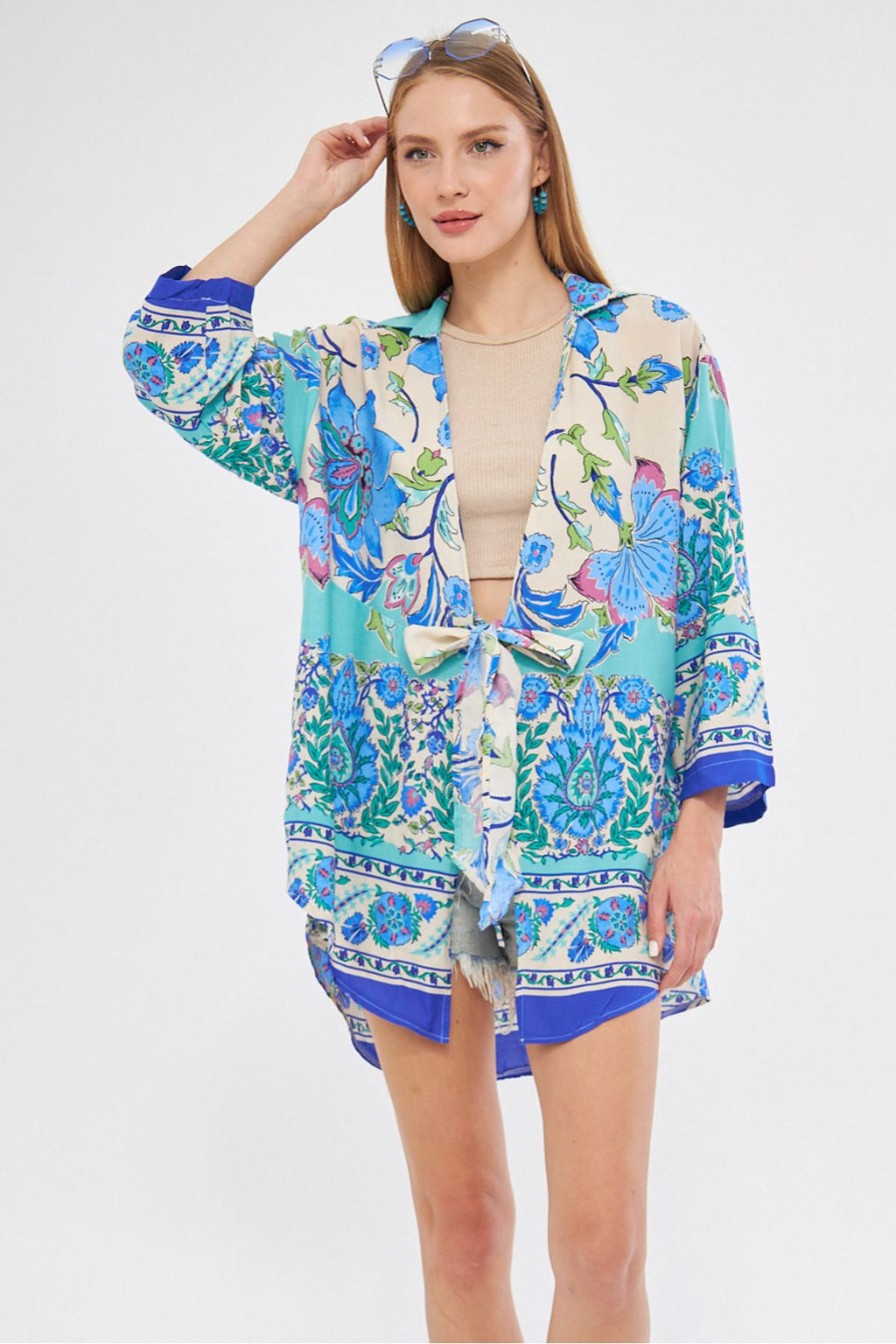 Female Saks Patterned front-binding kimono shirt ARM-24Y001080