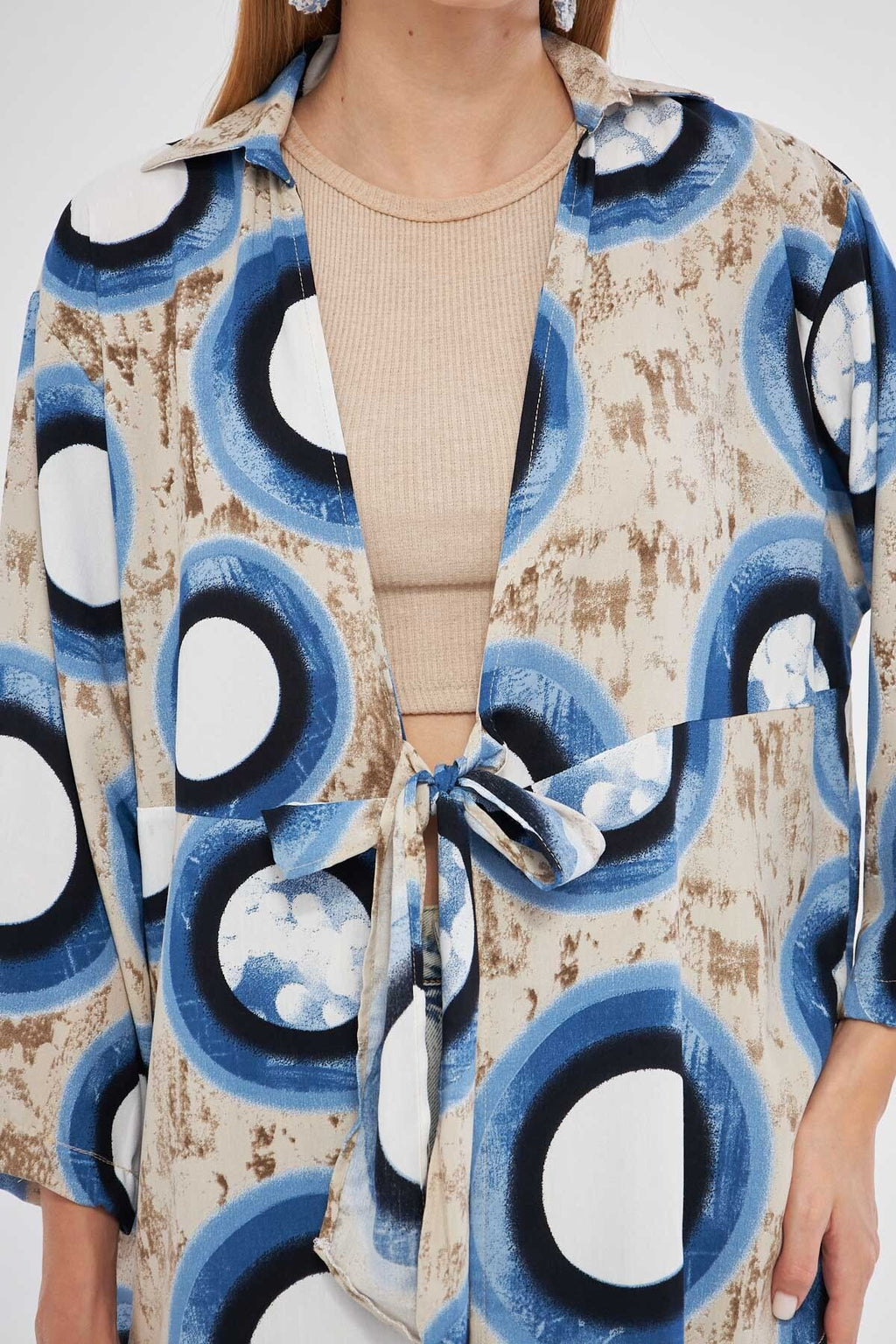 Female Stone Patterned front-binding kimono shirt ARM-24Y001080
