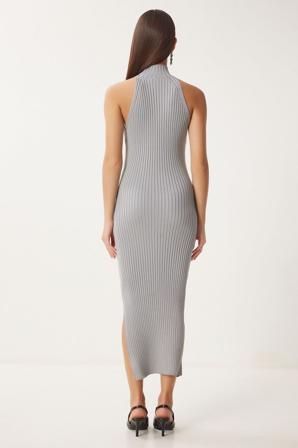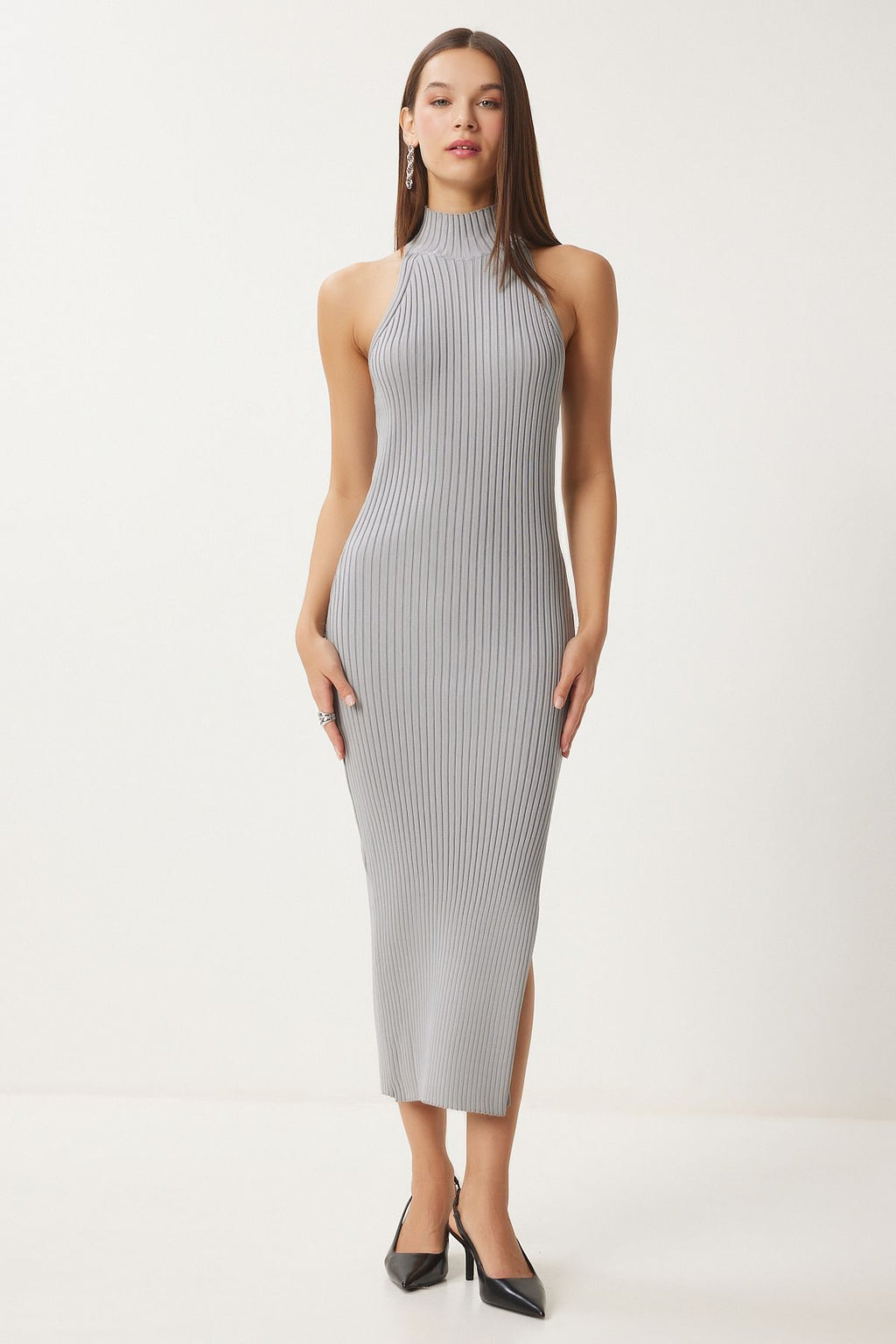 Female Stone Shoulders Open Wrapped Red Triko Dress FN03424