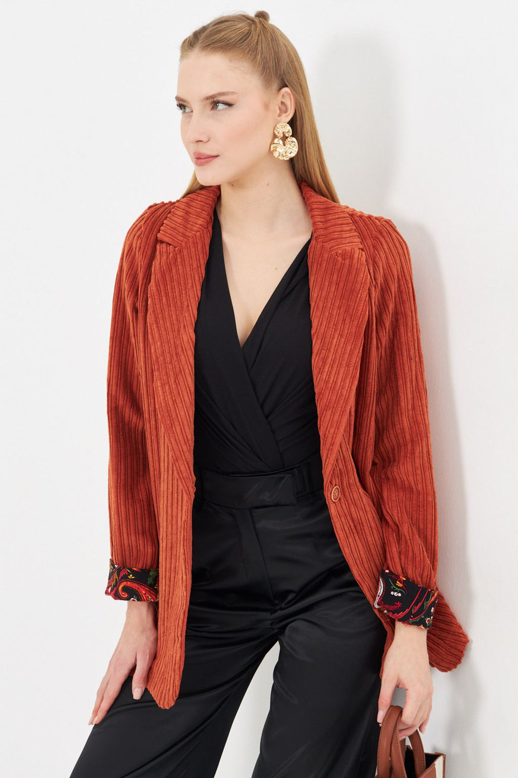Female Tile In-Sleeve Patterned Single button Velvet Jacket ARM-24K001056