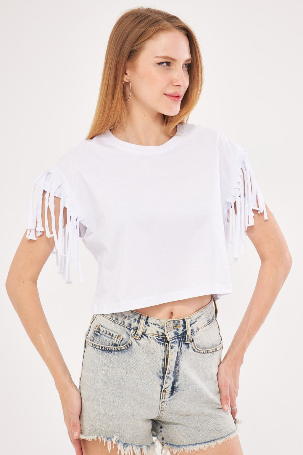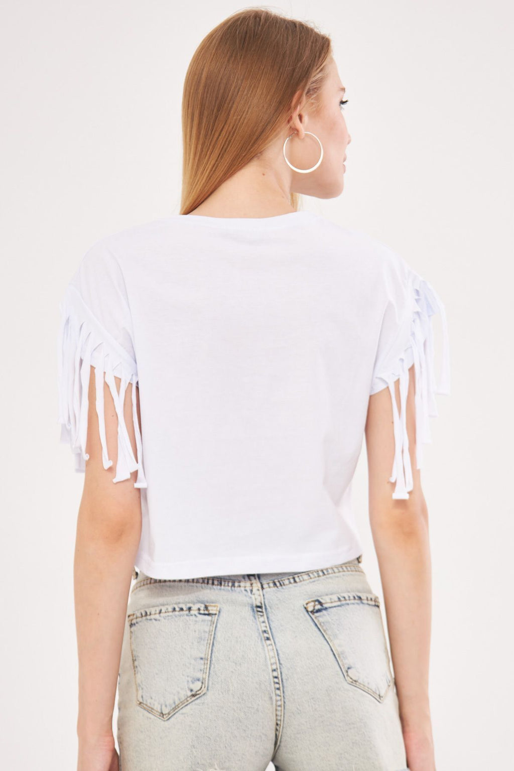 Female white arms tassel overwheeling Crop t-shirt ARM-24Y024019