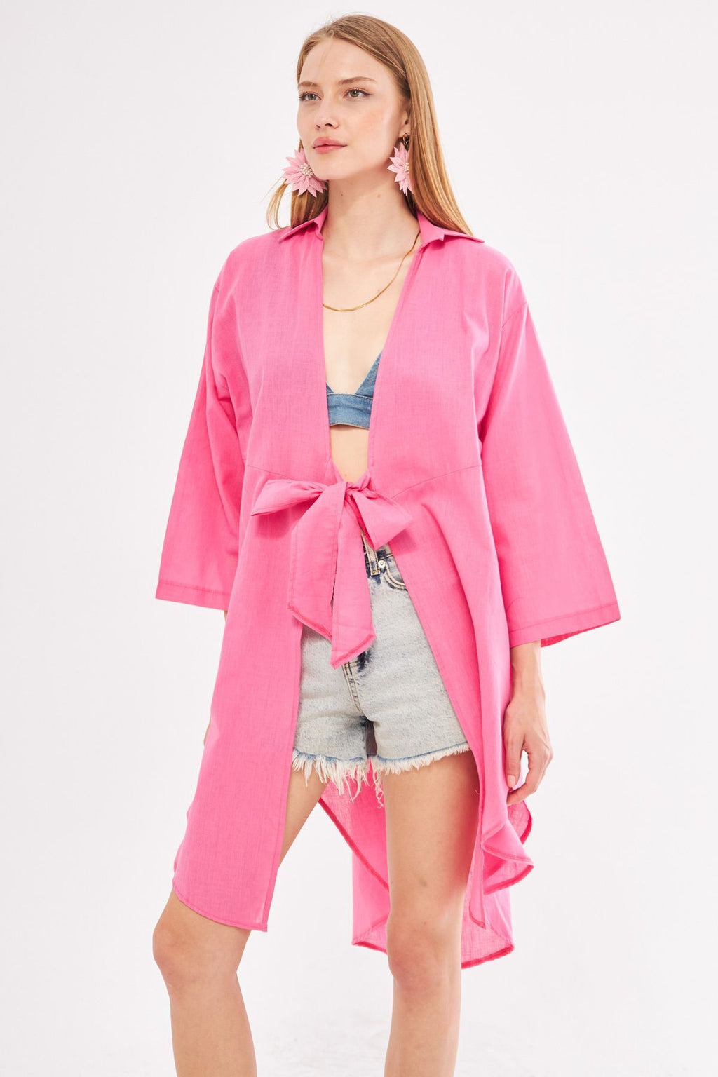 Fuchsia Fuchsia front-binding thin linen fabric midi boy kimono shirt ARM-24Y001081