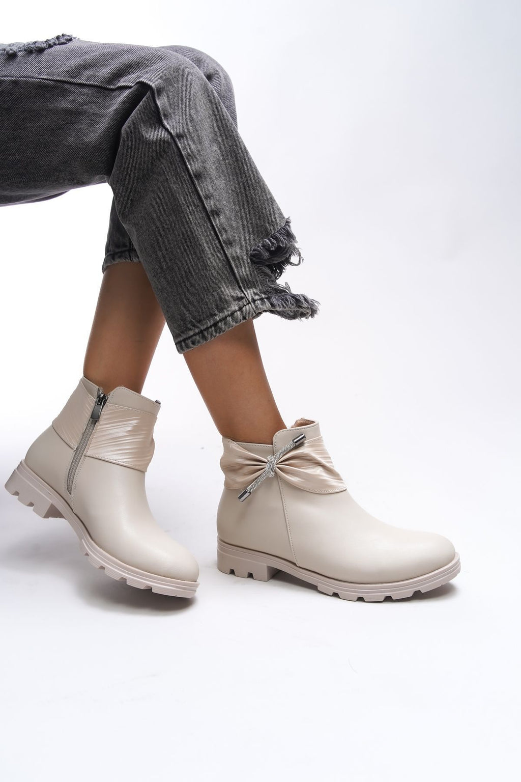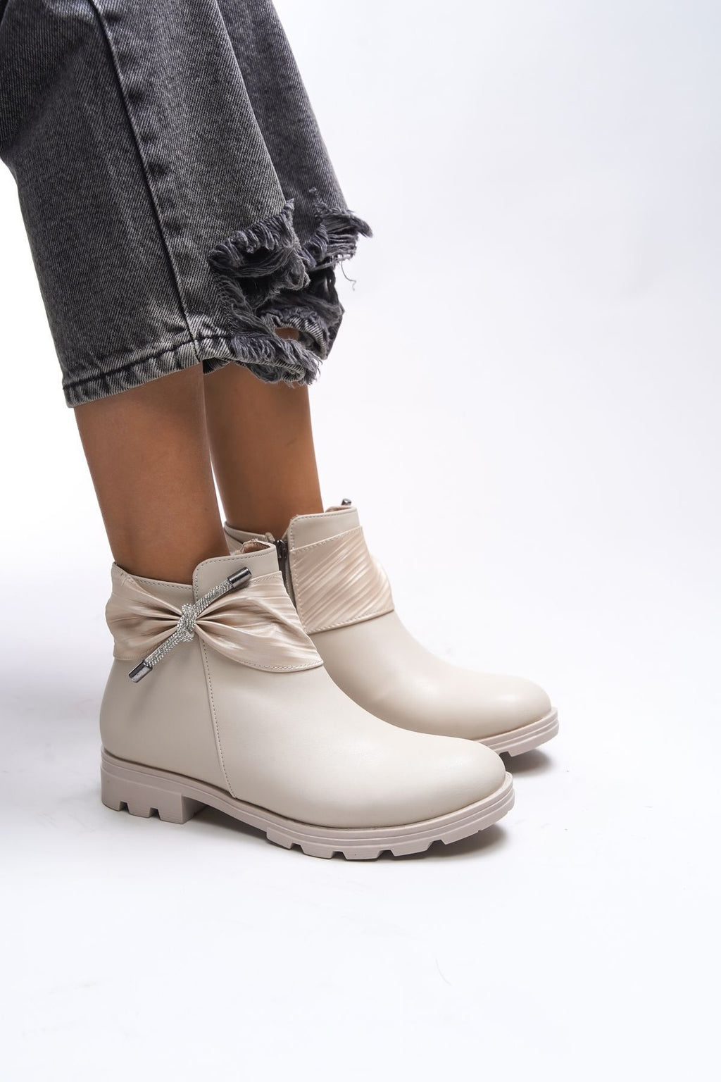 Gaenledha Women's Ribbon and Stone Detail Bot Beige Skin