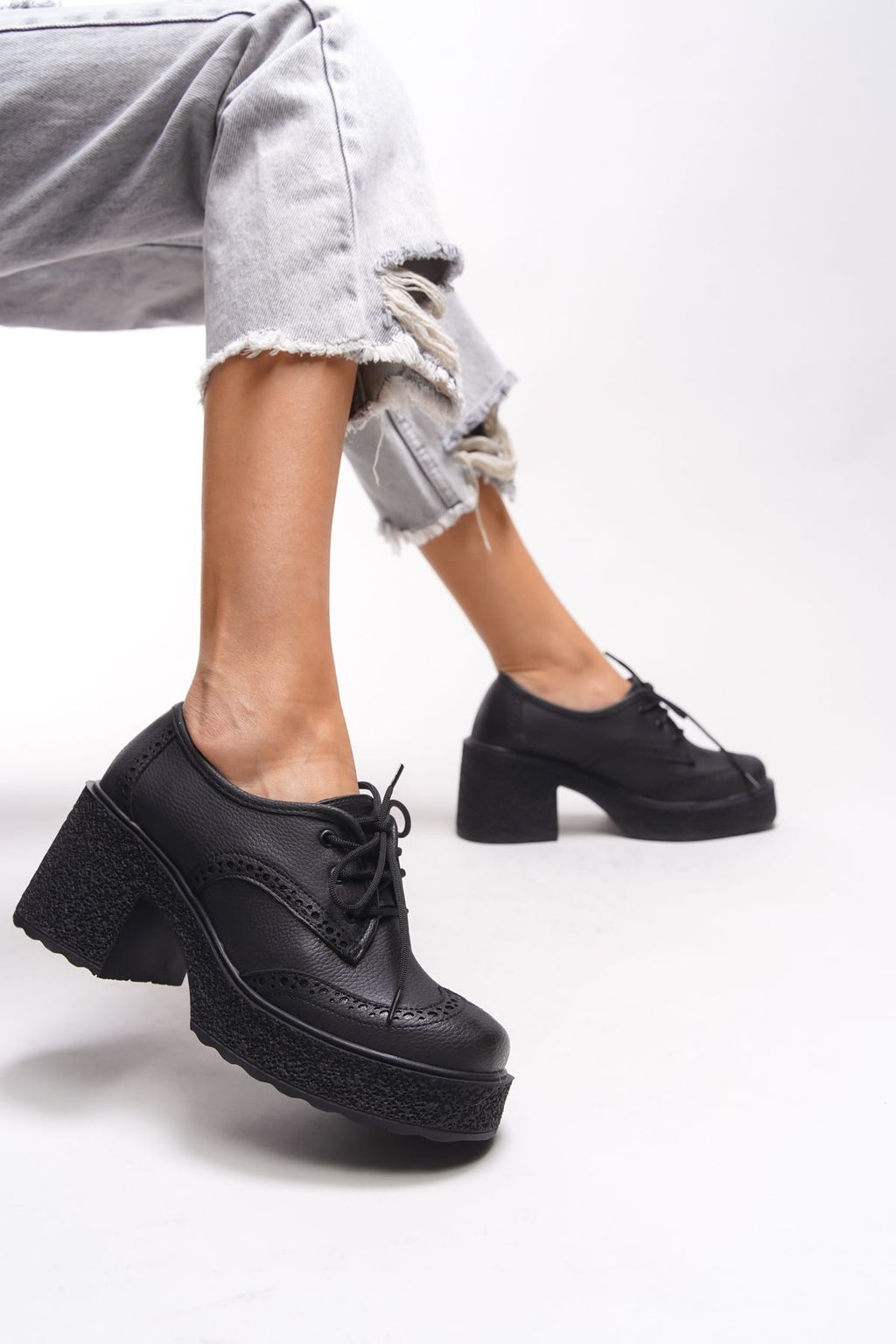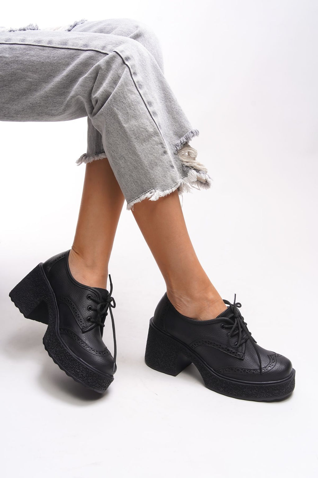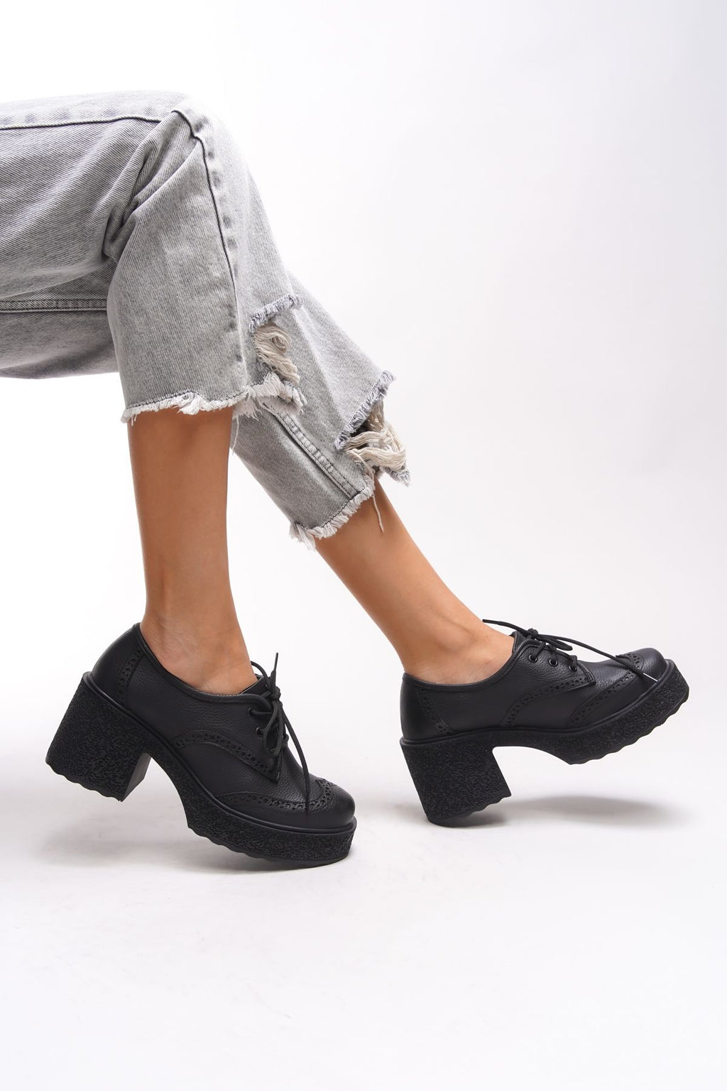 Ghinziss Women's Heels Lace Loafer 00121570 textured black skin