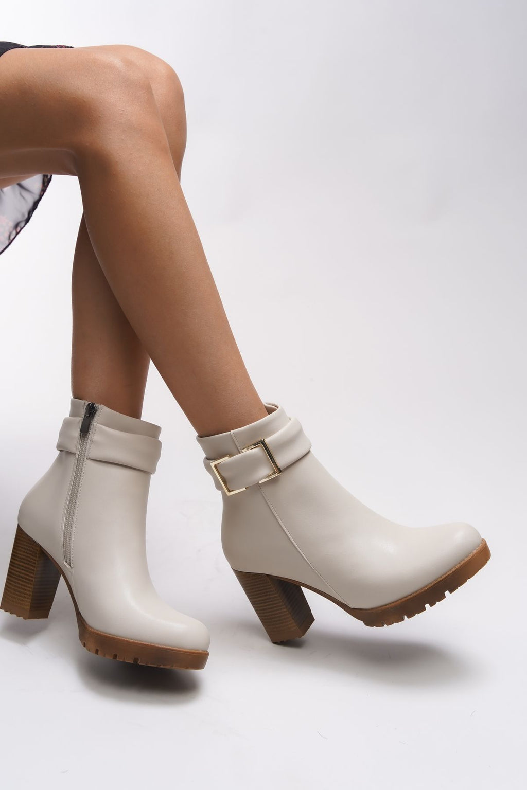 Isolniya Female clasp detailed high heeled boots 0012503 beige skin
