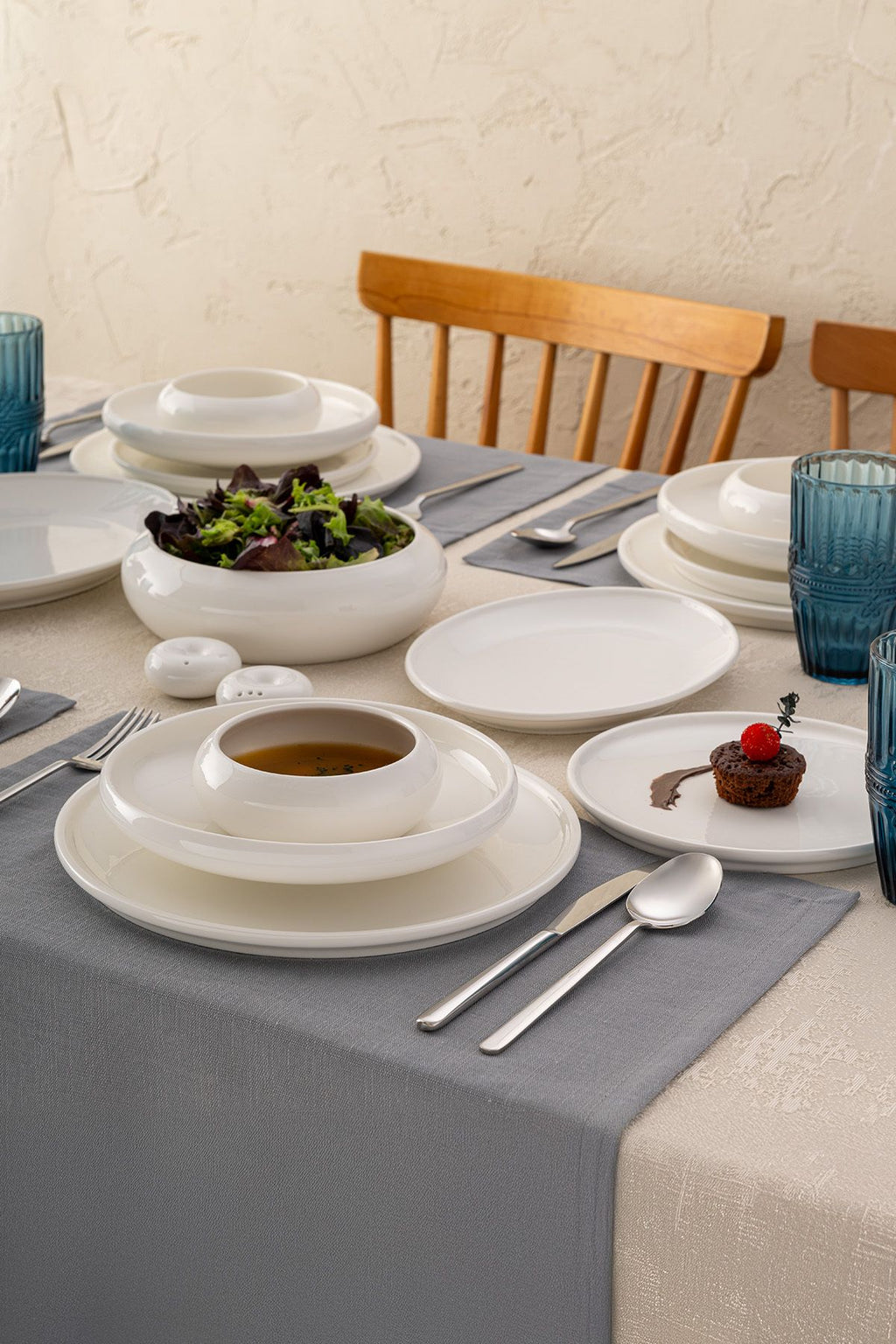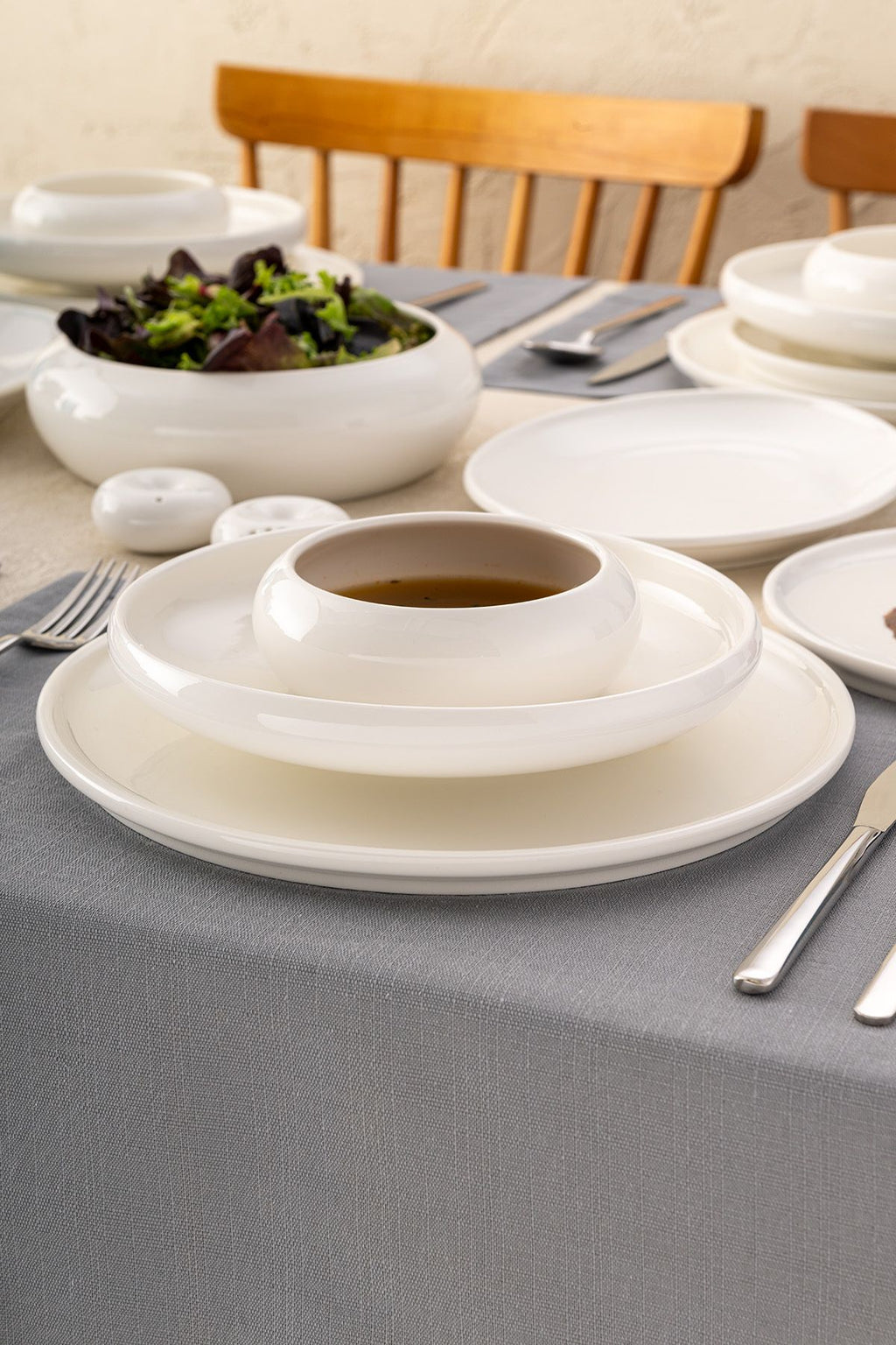 İstanbul Porselen Kınalıada 53 Parça 12 Kişilik Yuvarlak Yemek Takımı