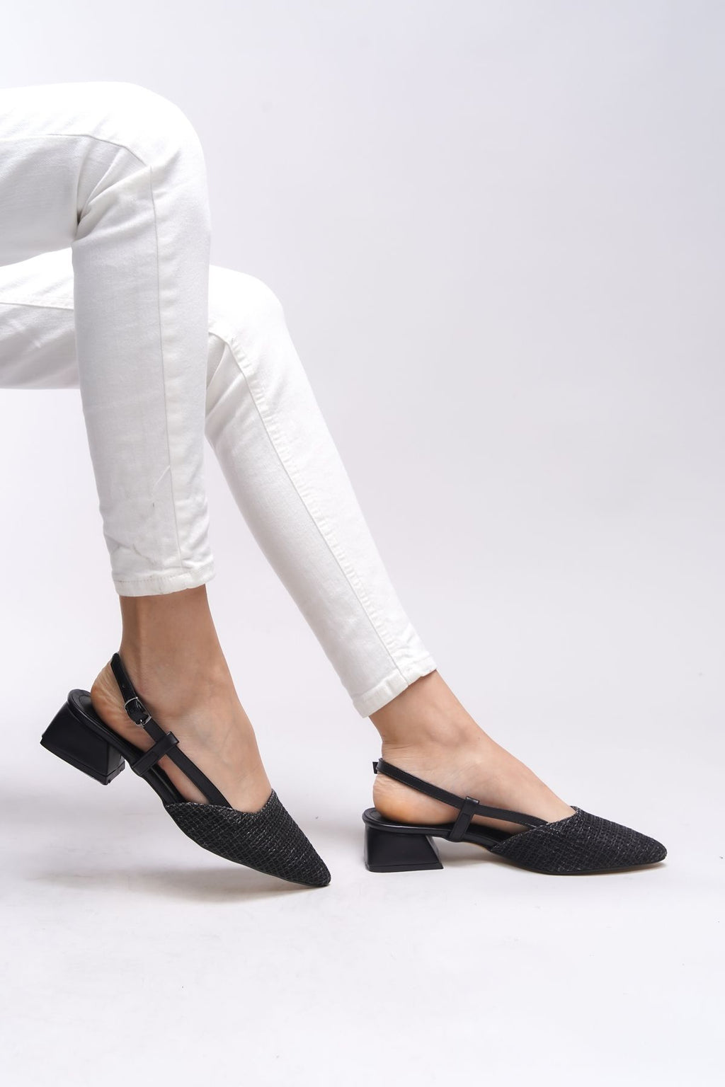 Ivethion Behind the Women's Behind Son -Heeled Shoes 0012340 Black Wicker