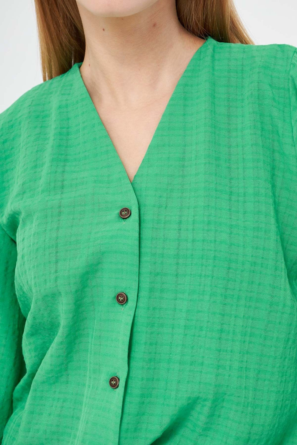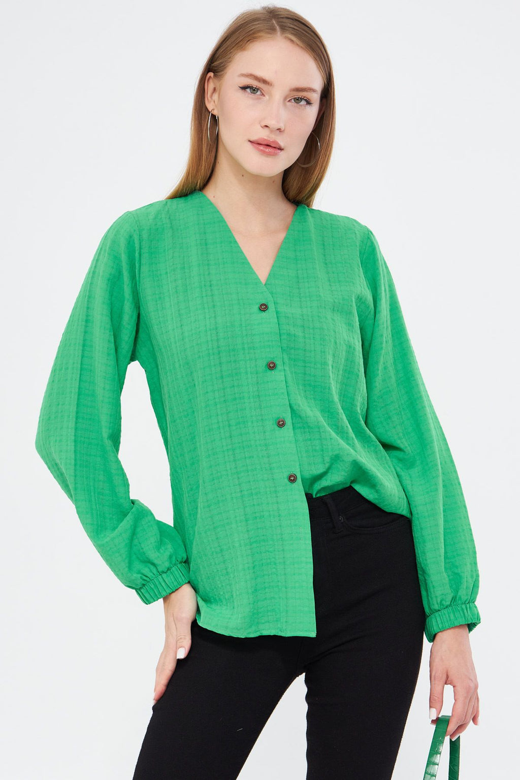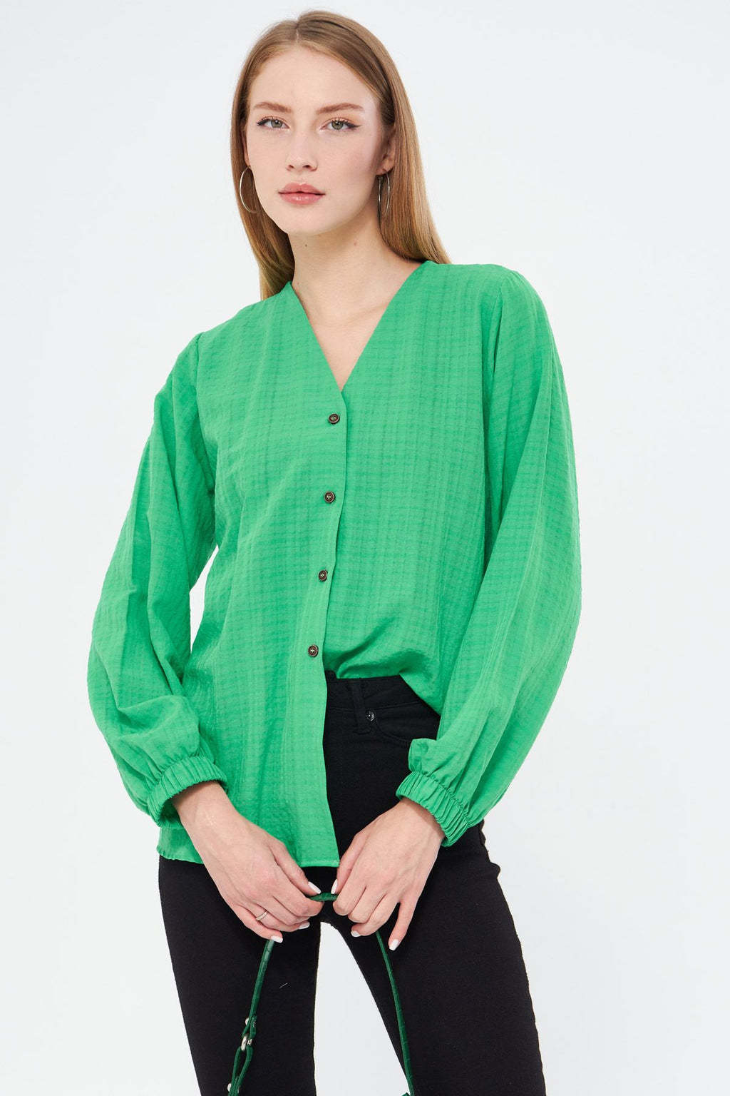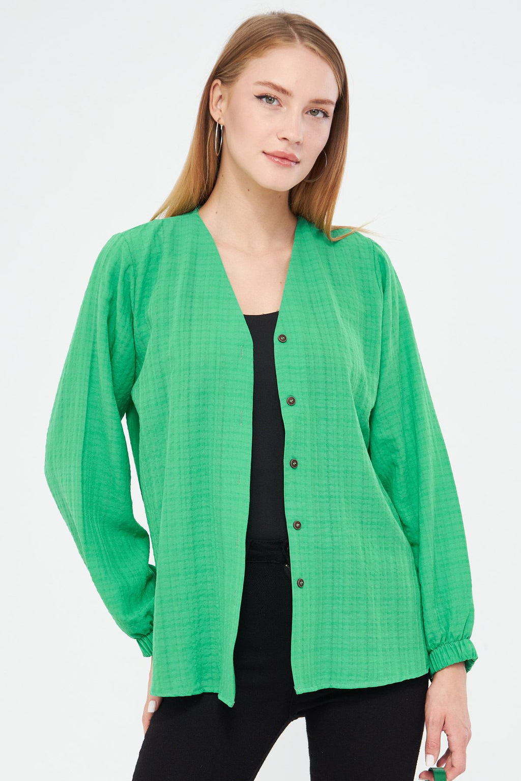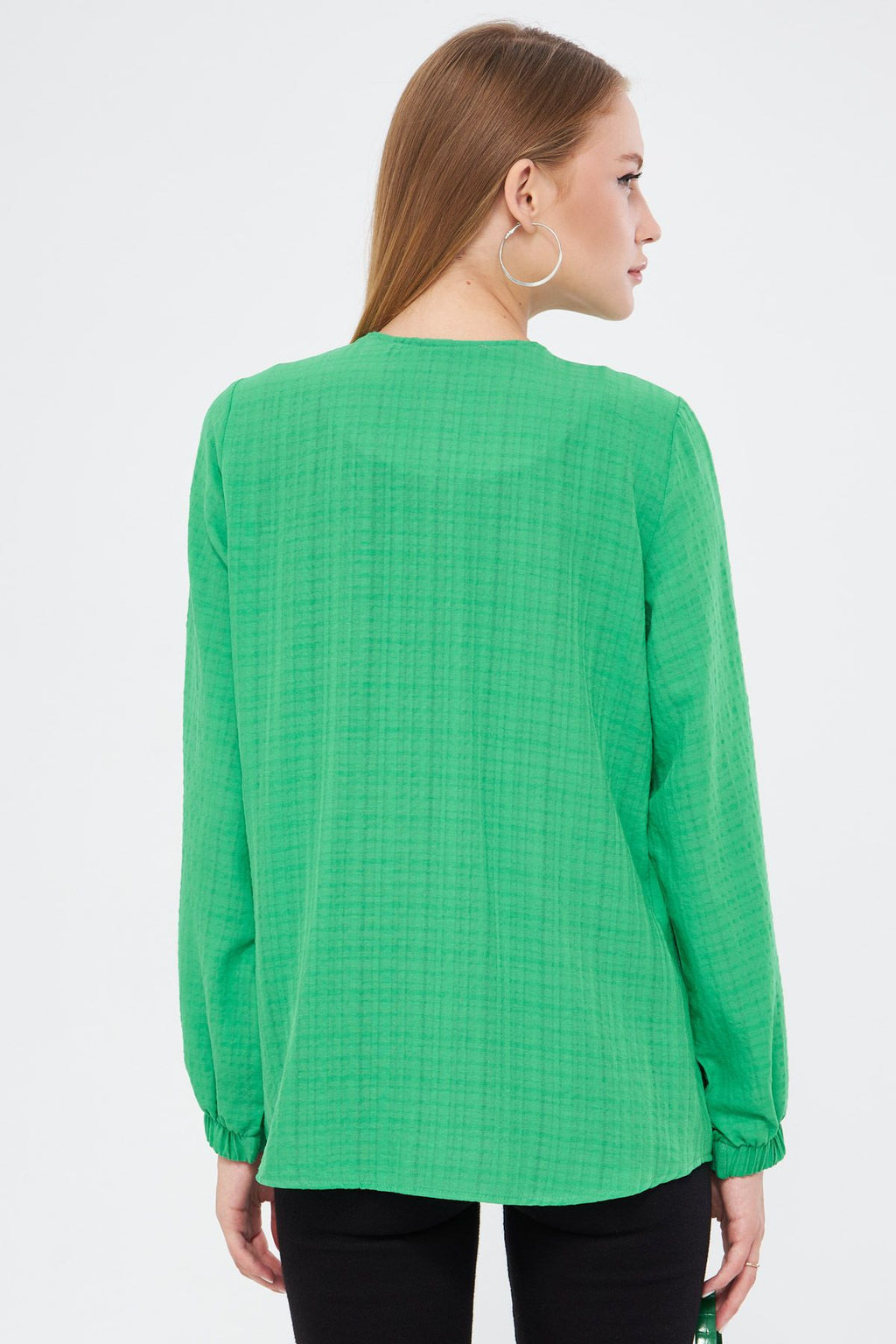 Kadın Açık Yeşil Kolu Lastikli Bürümcük Gömlek ARM-24K001002