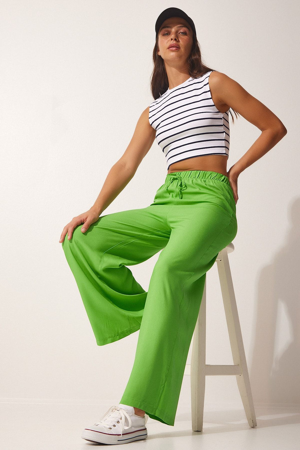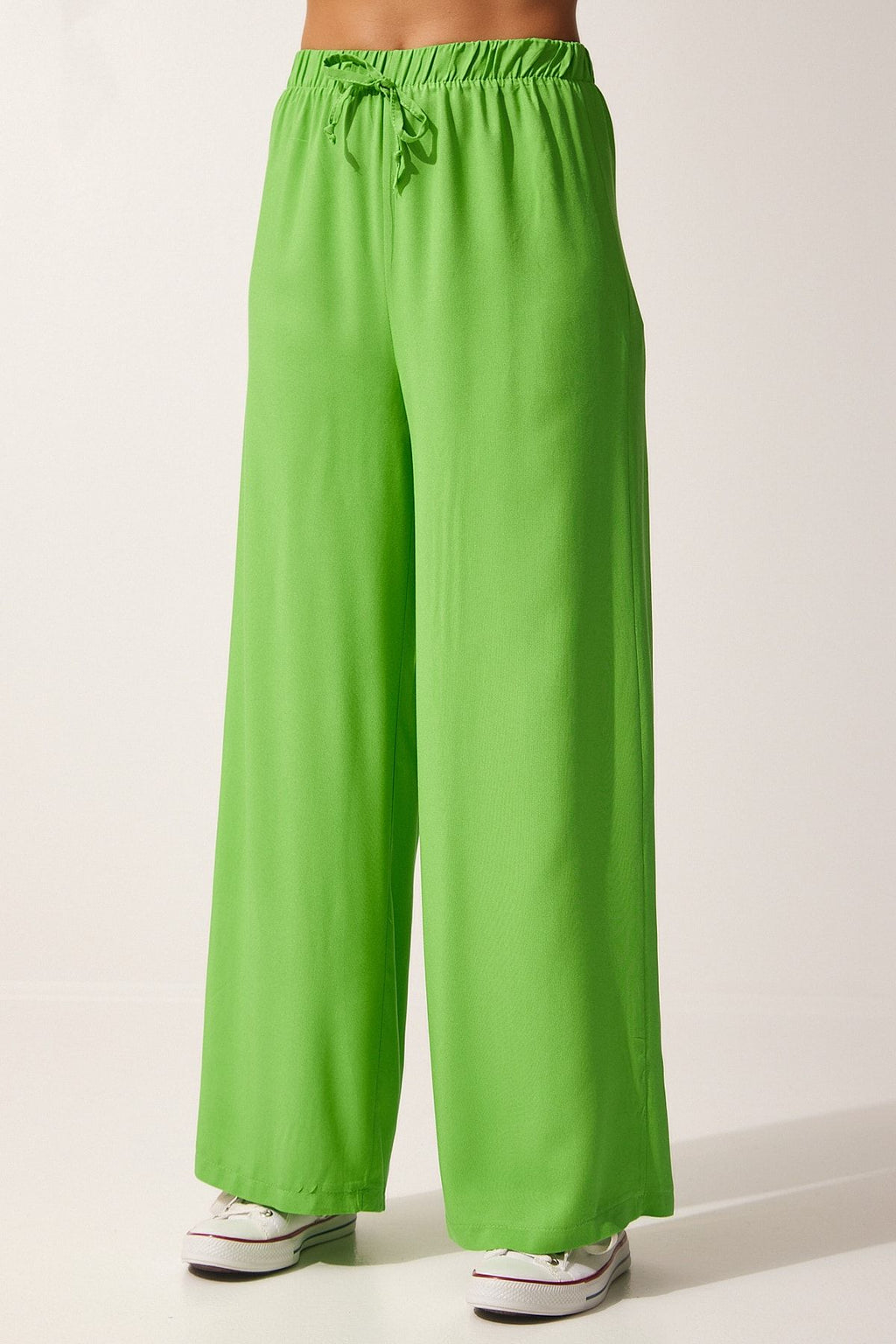 Kadın Açık Yeşil Pamuklu Viskon Palazzo Pantolon BV00076