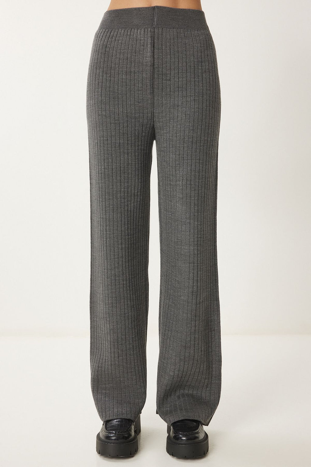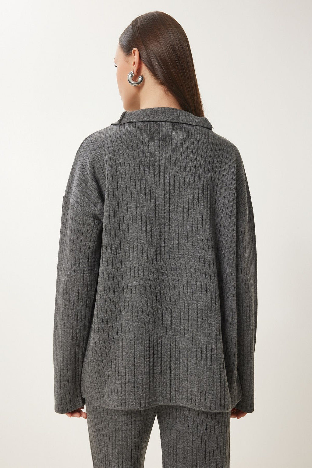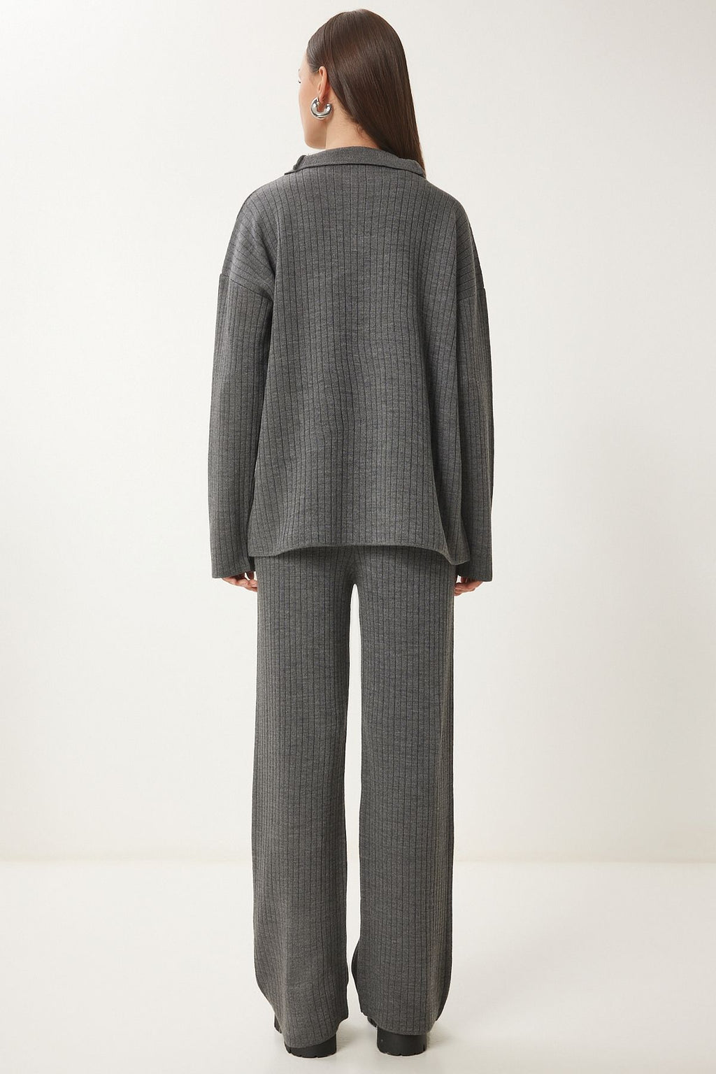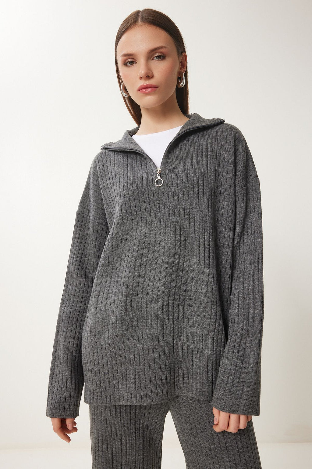 Kadın Antrasit Fermuarlı Fitilli Triko Kazak Pantolon Takım PF00105
