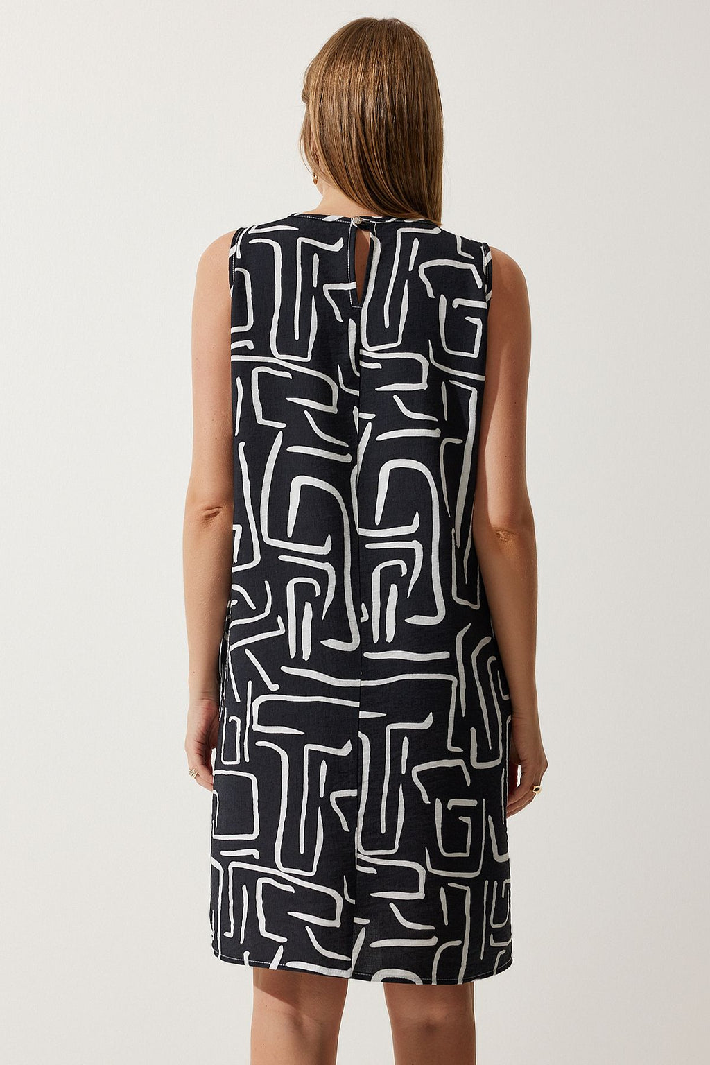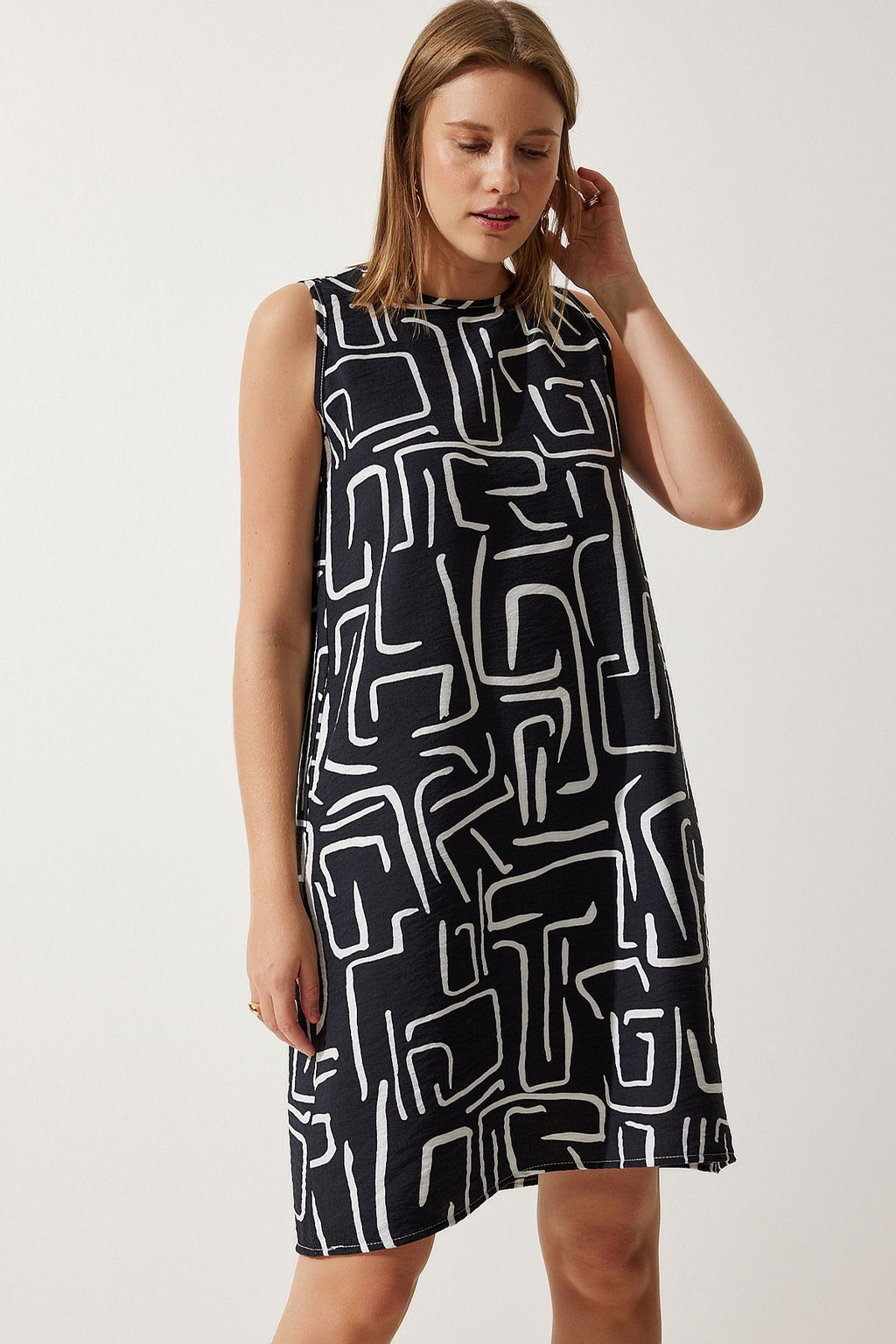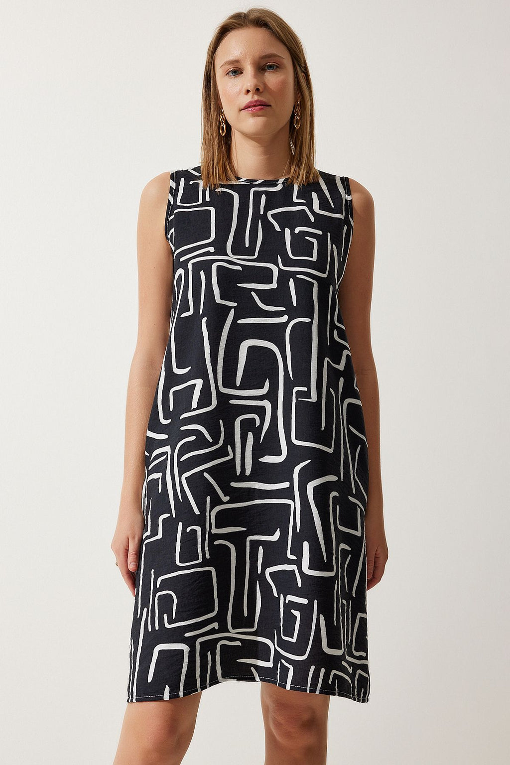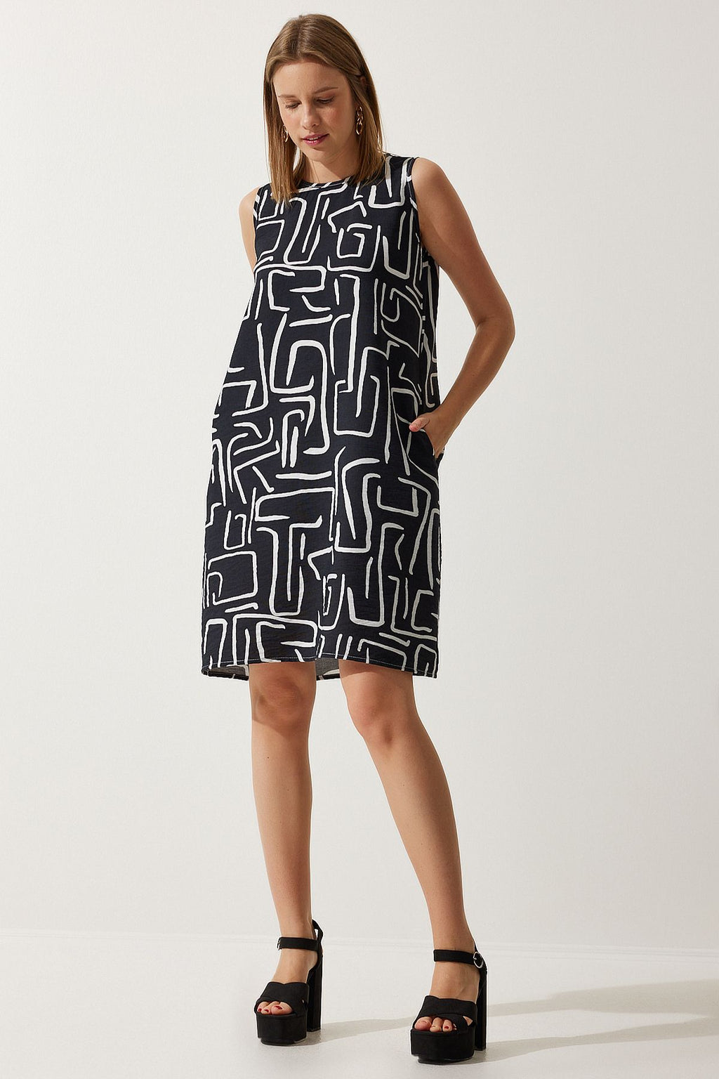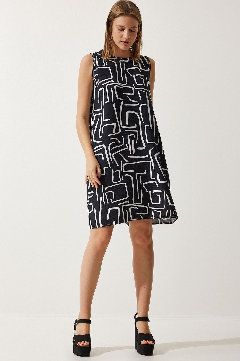 Kadın Canlı Siyah Desenli Yazlık Çan Elbise BV00053