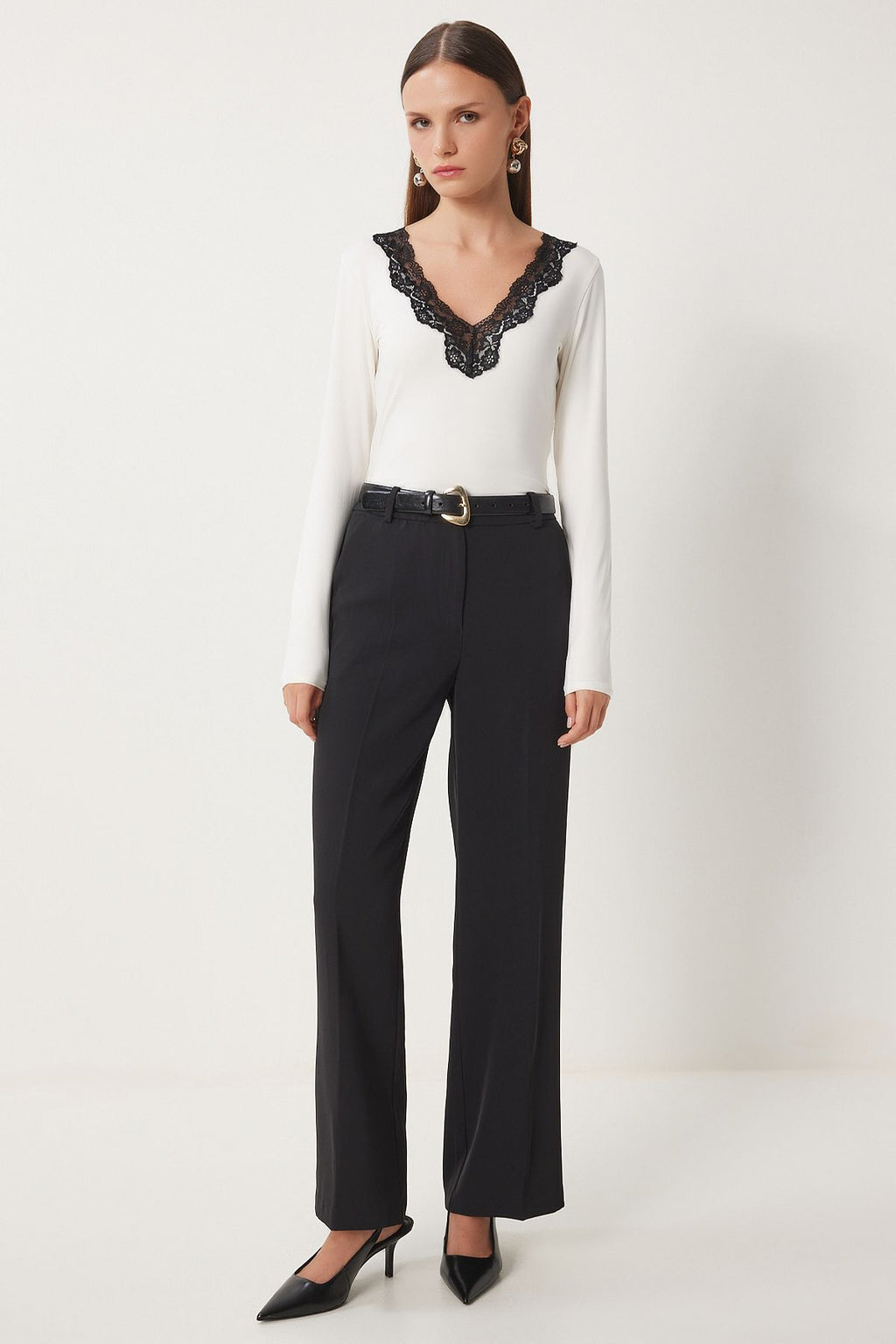 Kadın Ekru V Yaka Dantelli Örme Çıtçıtlı Body CV00037