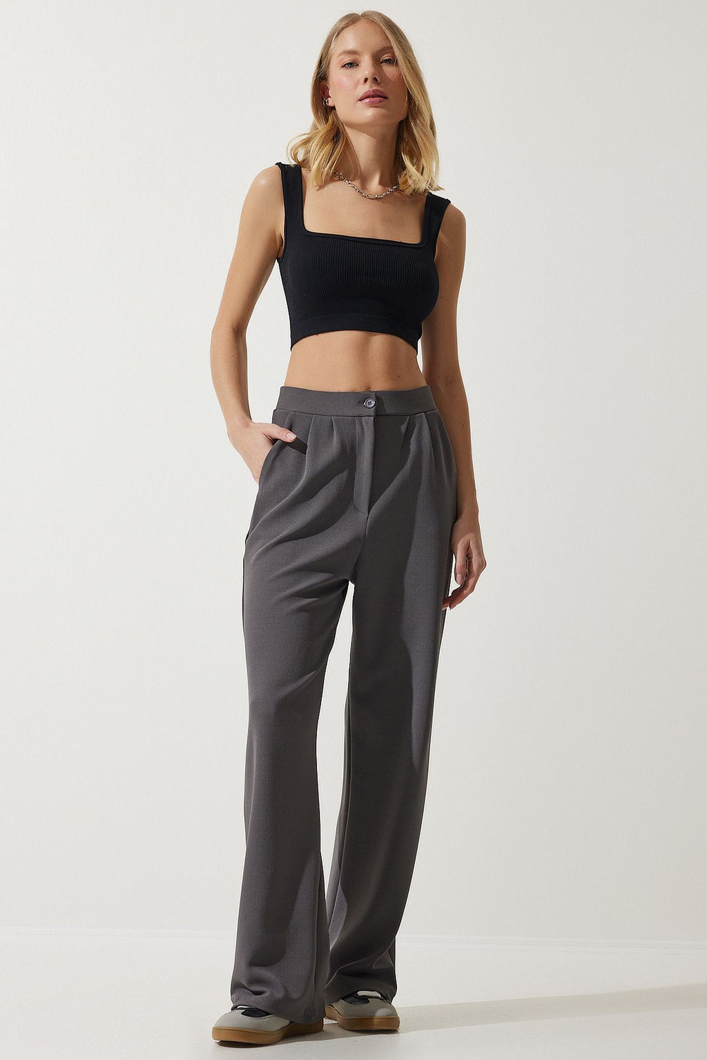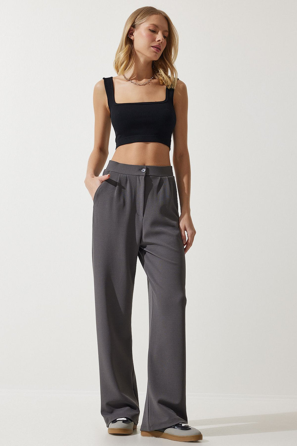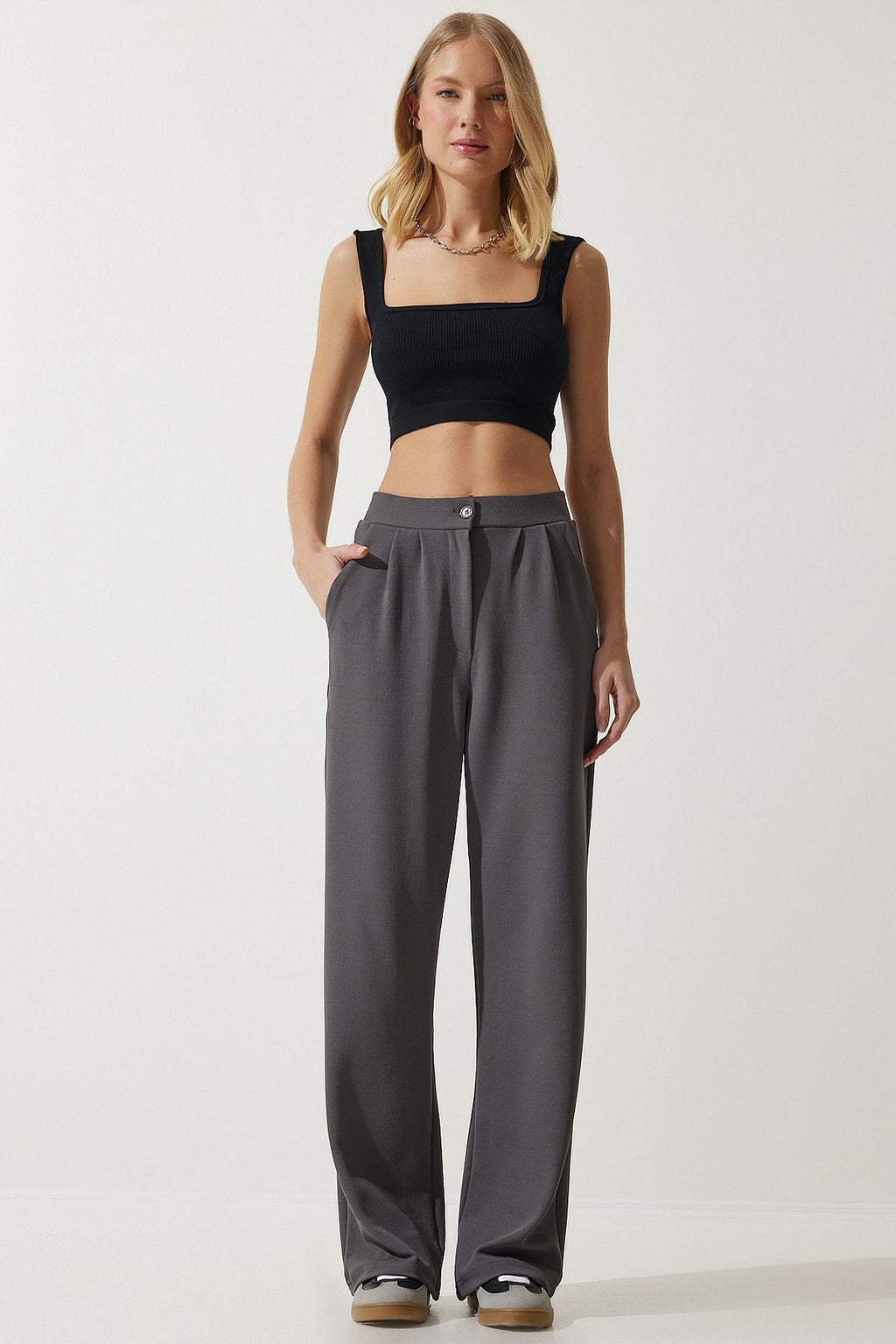 Kadın Gri Likralı Rahat Palazzo Örme Pantolon RV00175