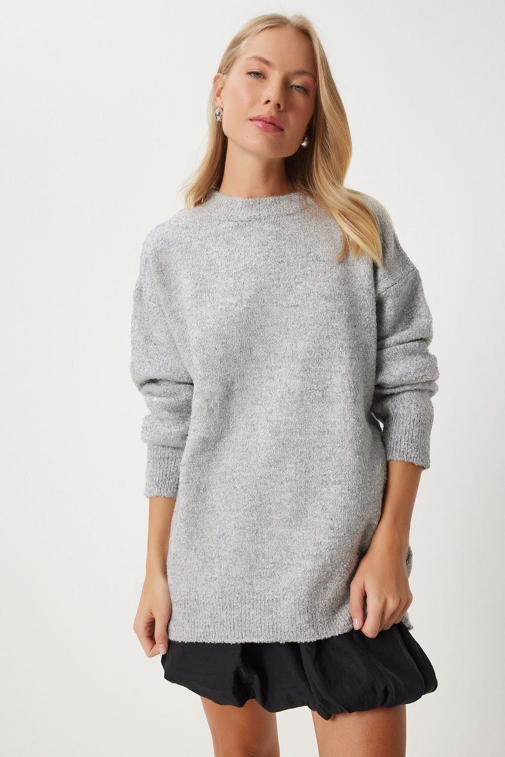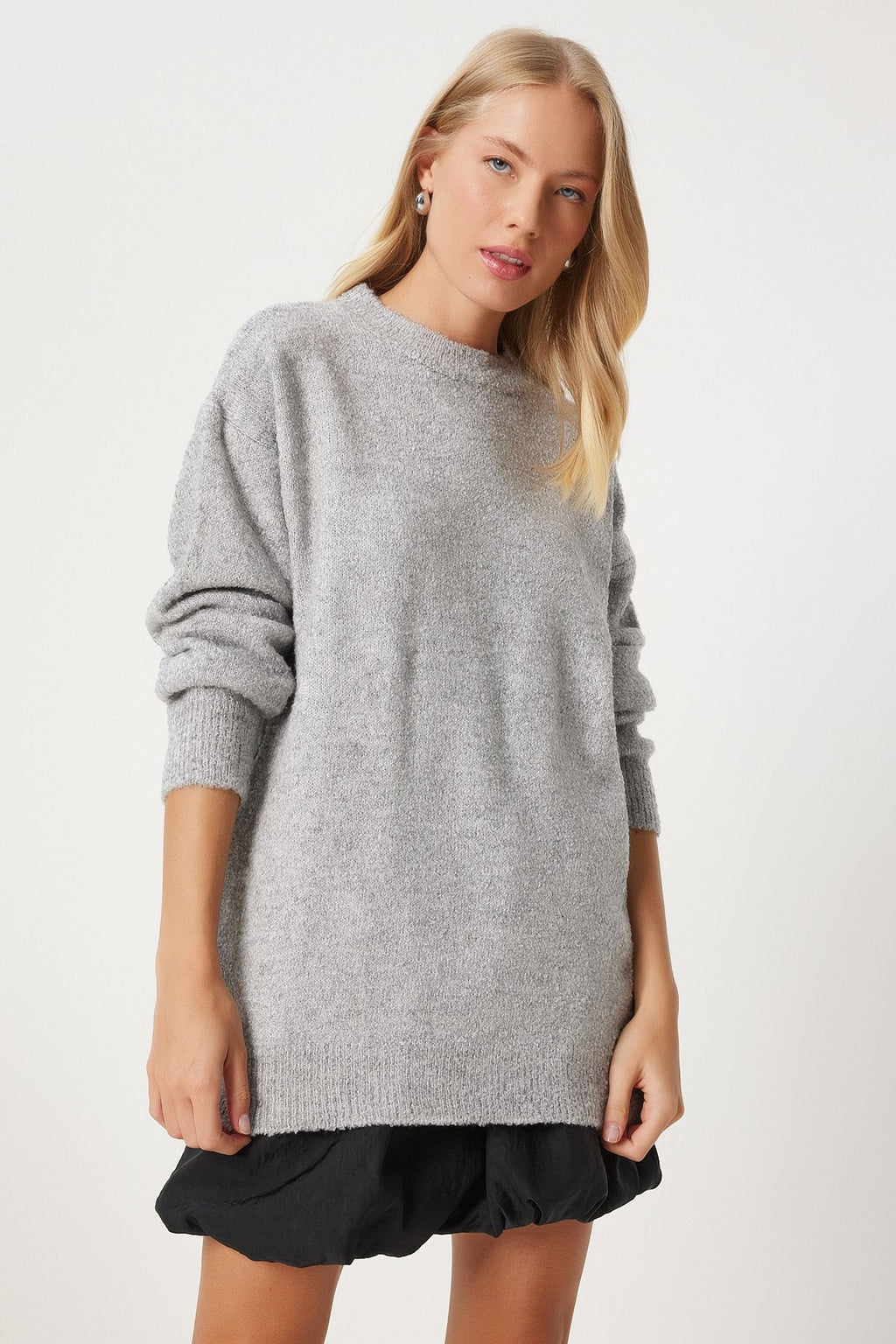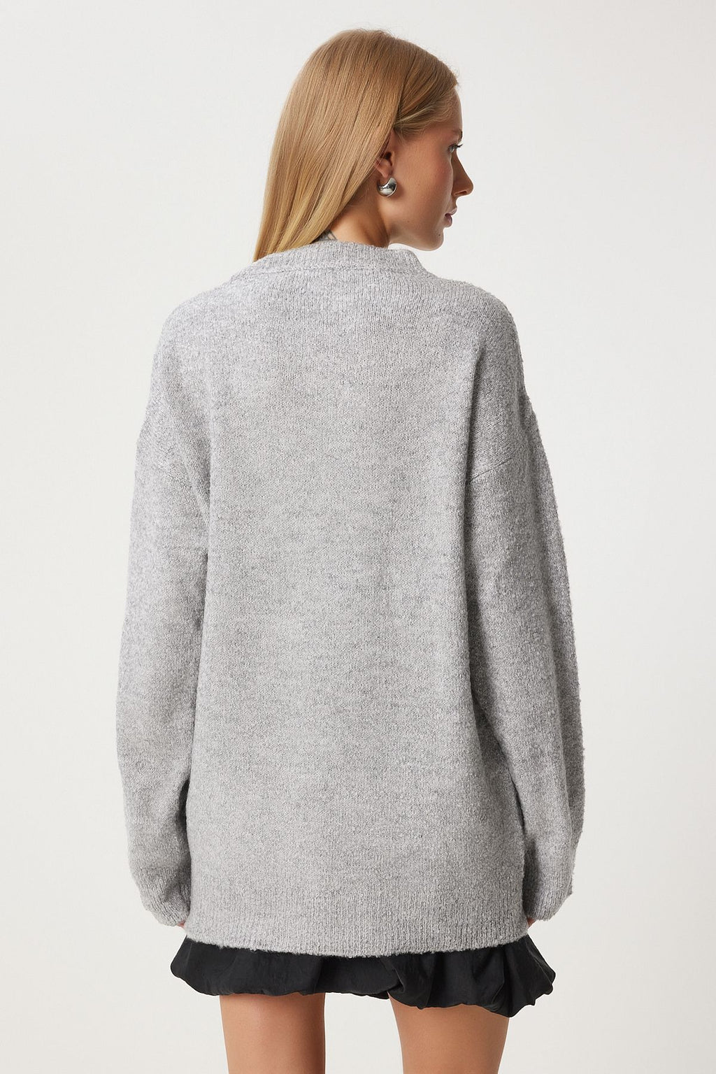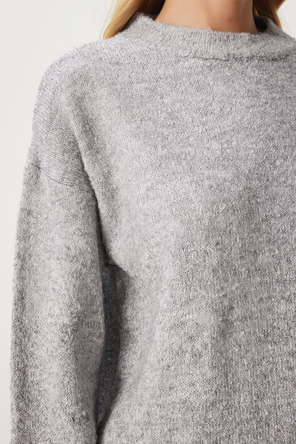Kadın Gri Rahat Kalıp Triko Kazak FN03337
