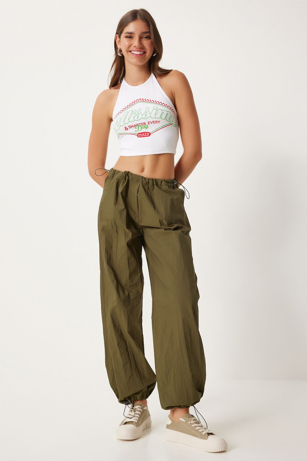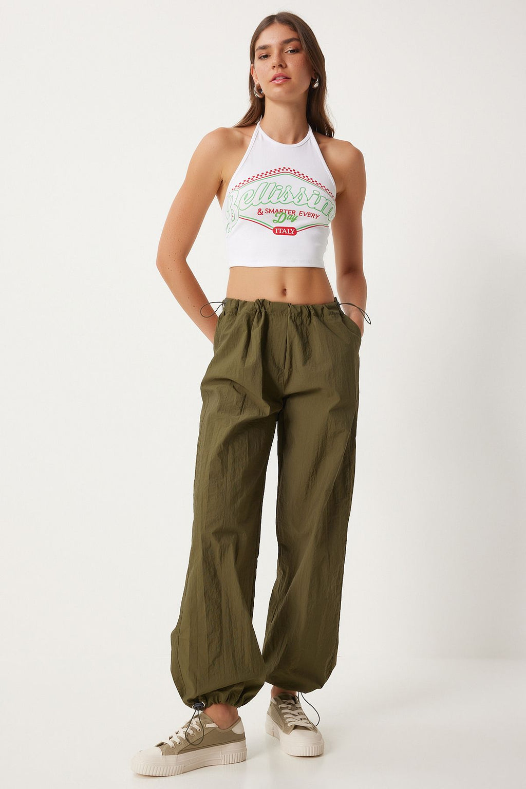 Kadın Haki Cepli Paraşüt Şalvar Pantolon FN03274