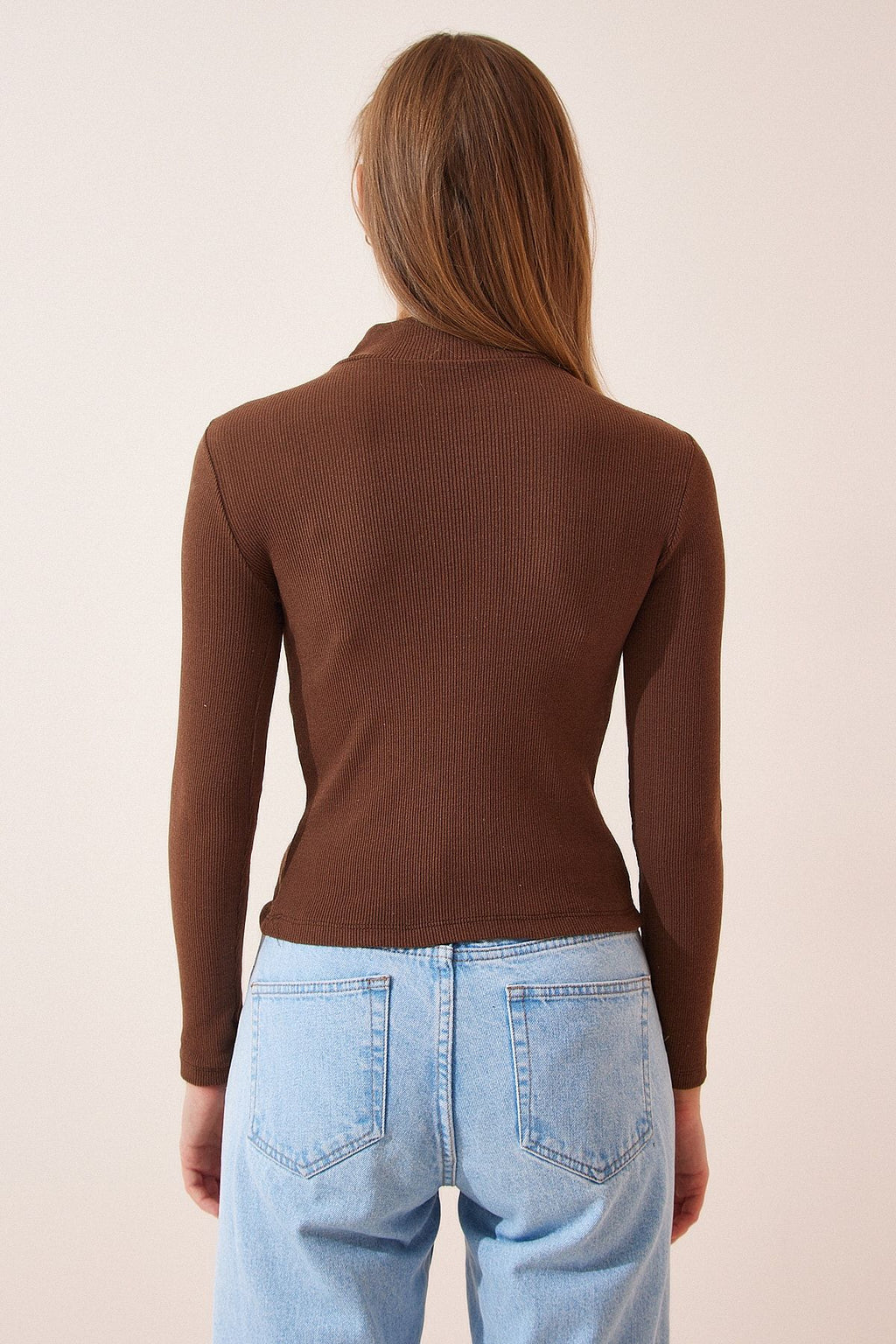 Kadın Kahverengi Beyaz 2'li Paket Fitilli Balıkçı Yaka Örme Bluz GT00053