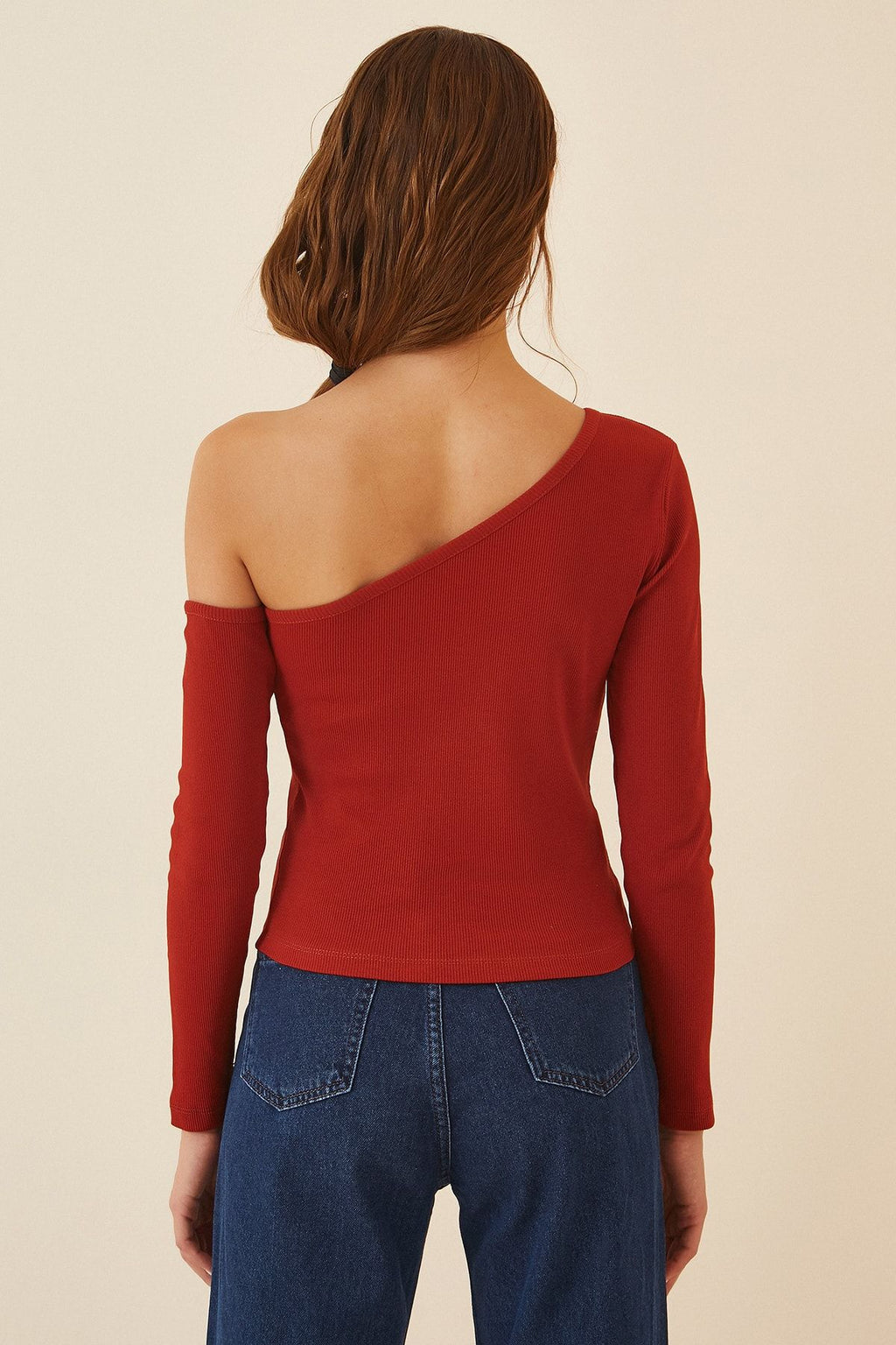 Kadın Kiremit Açık Omuzlu Fitilli Örme Bluz TG00011