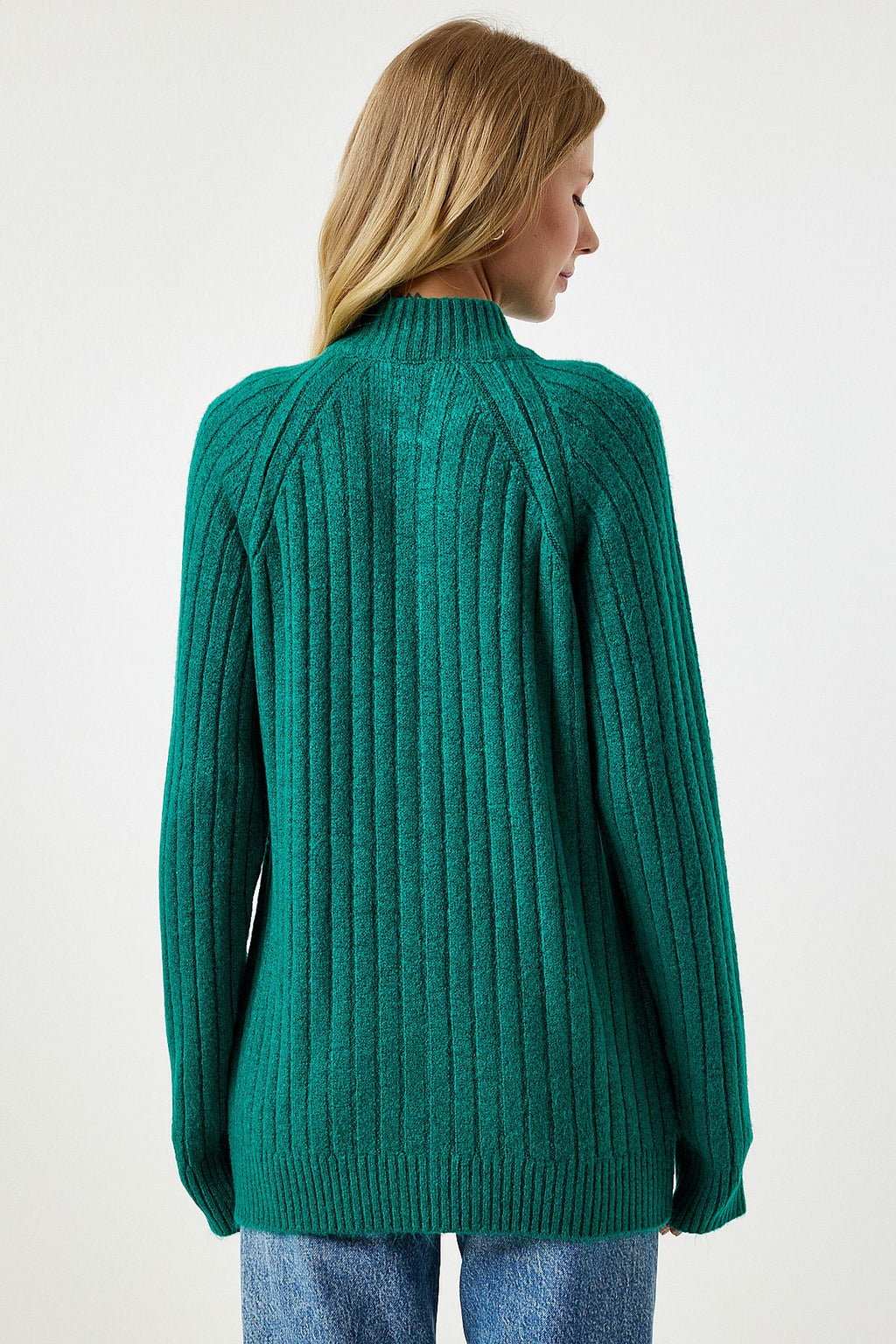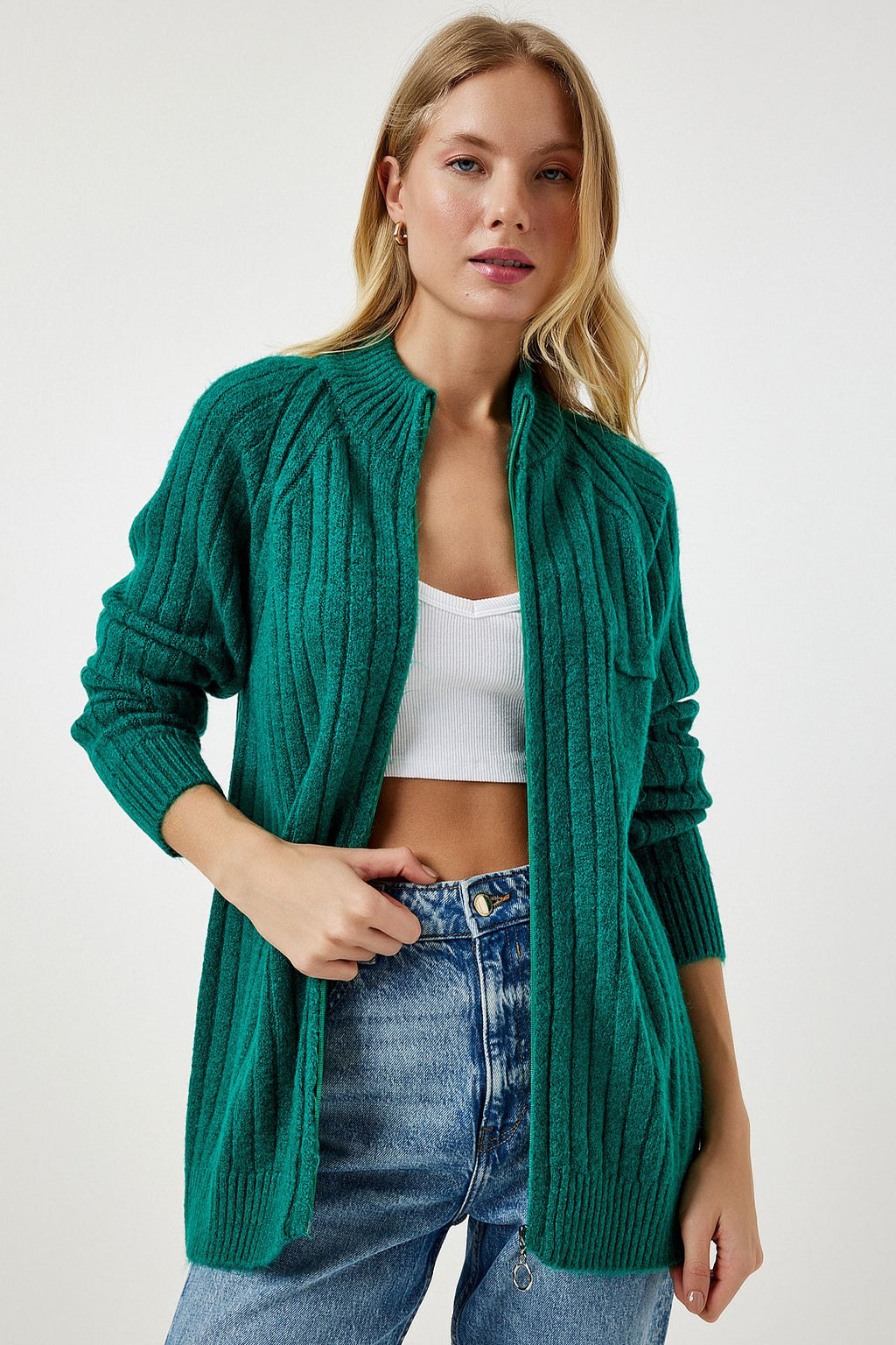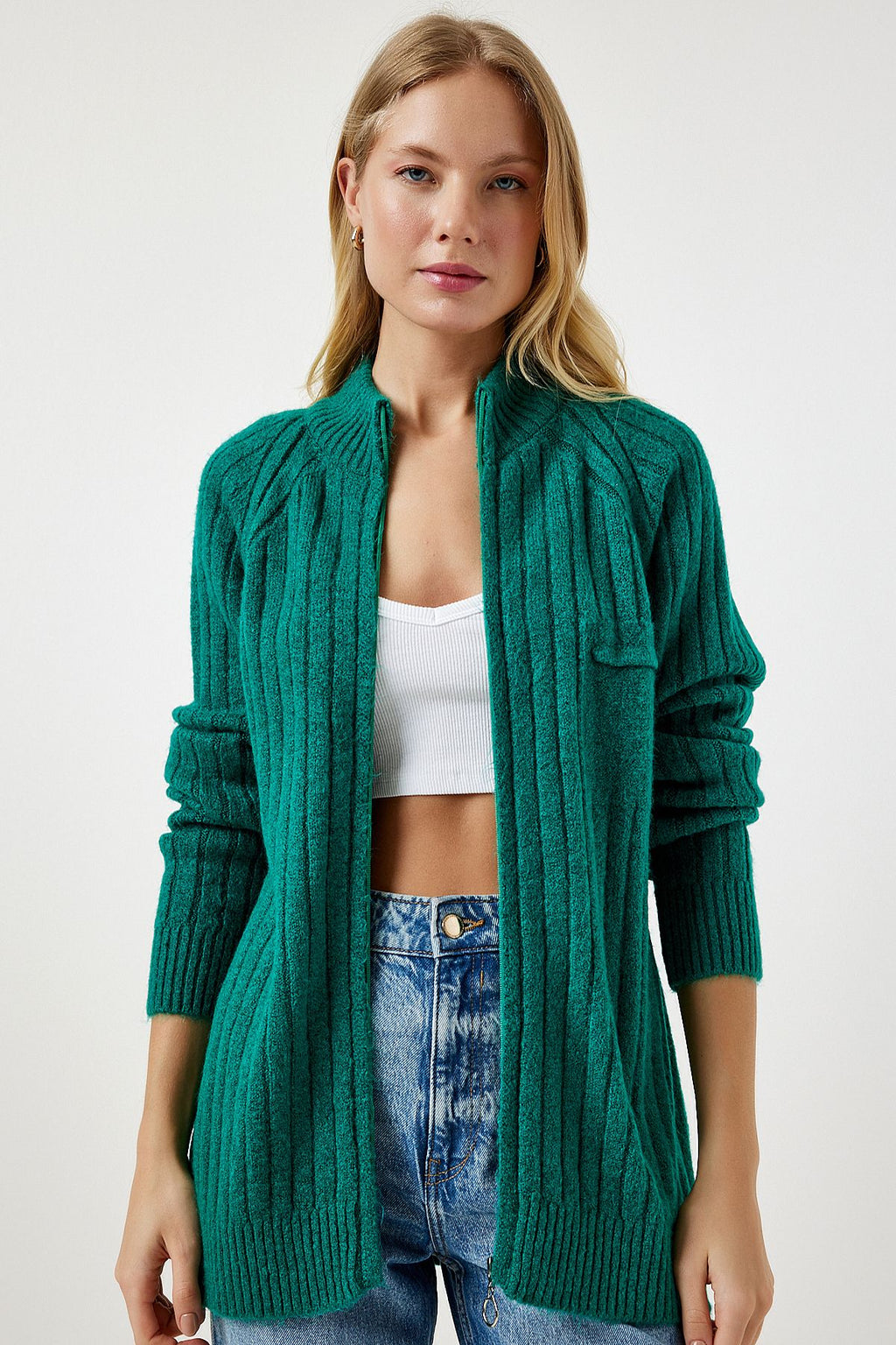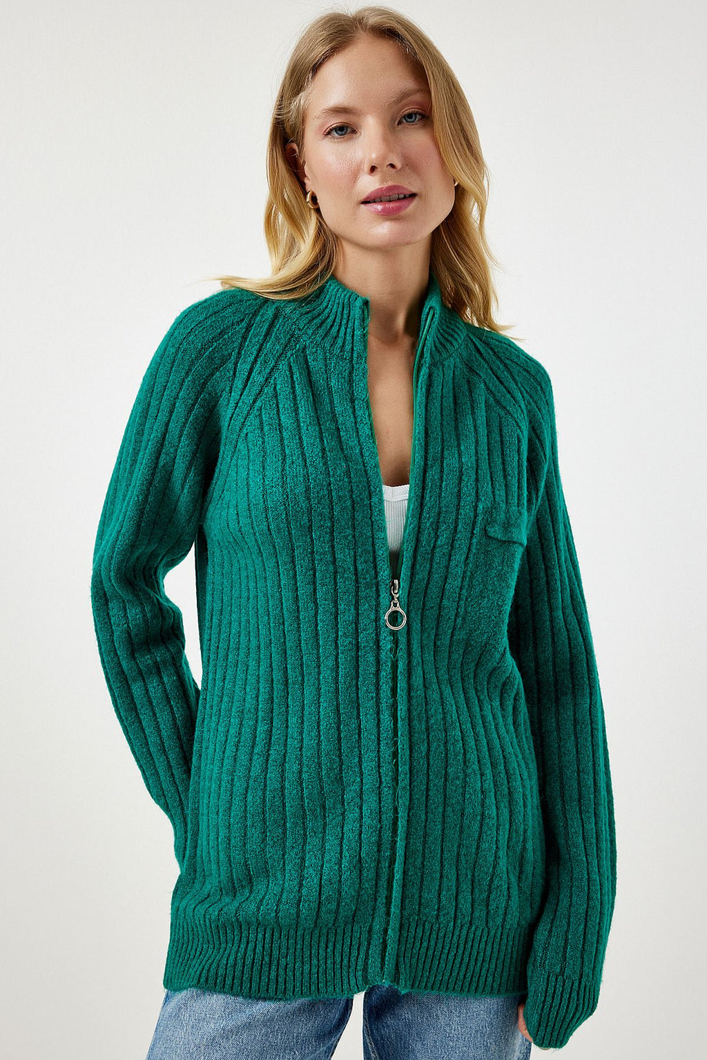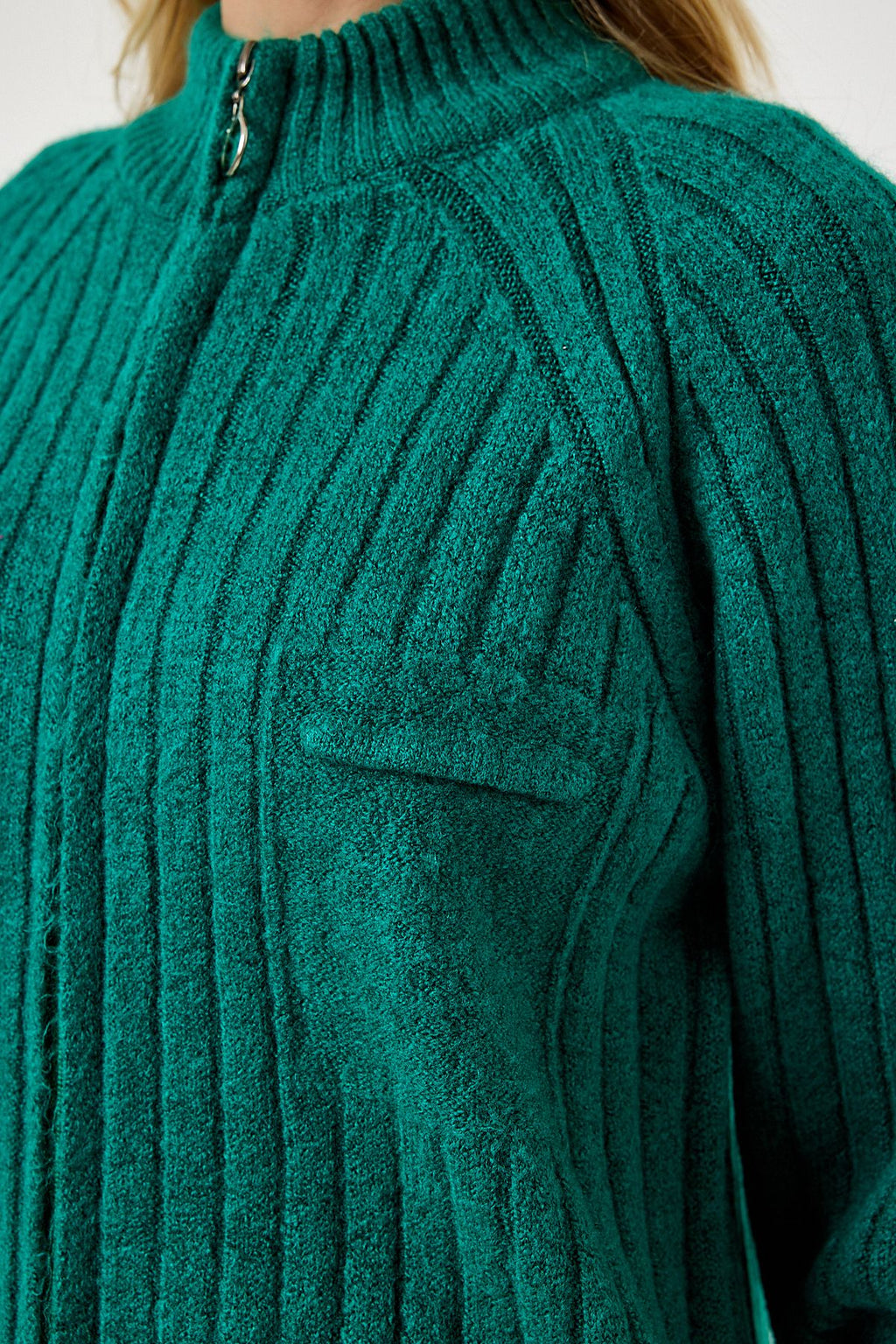 Kadın Koyu Yeşil Fermuarlı Triko Hırka DD01301