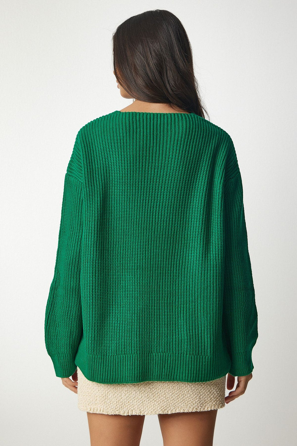 Kadın Koyu Yeşil V Yaka Oversize Basic Triko Kazak MX00130
