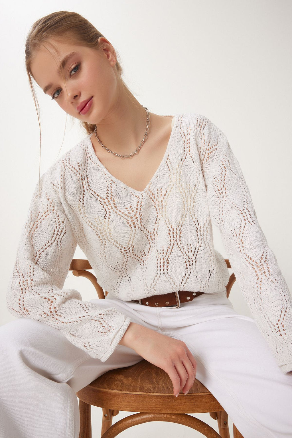 Kadın Krem Ajurlu Triko Kazak MC00208
