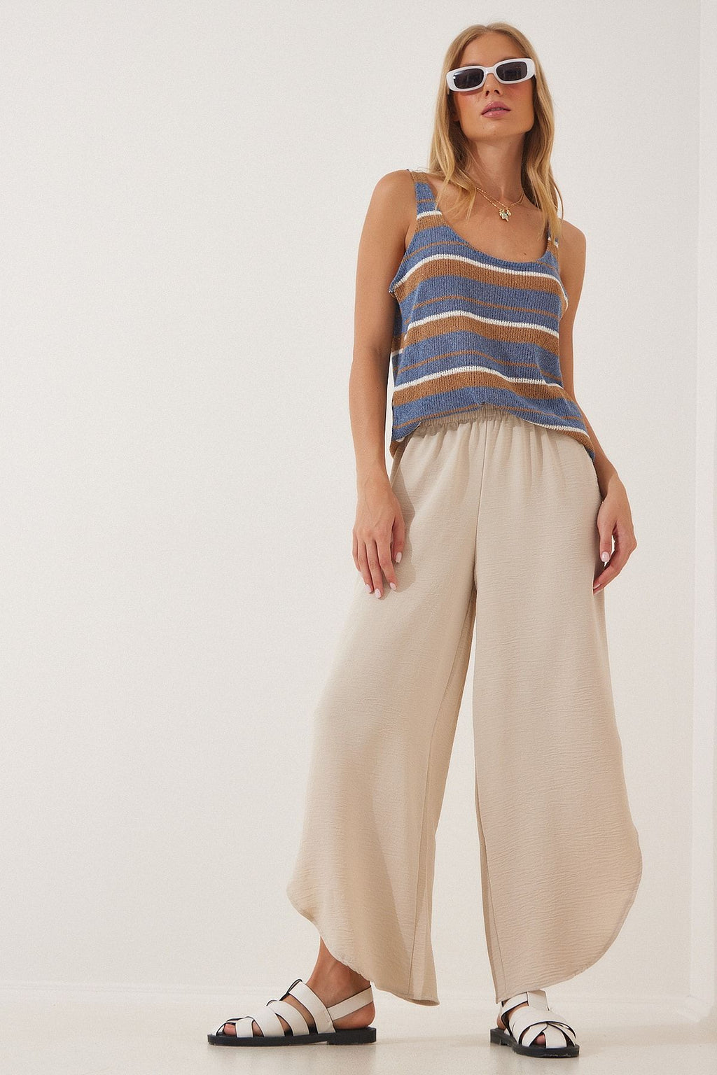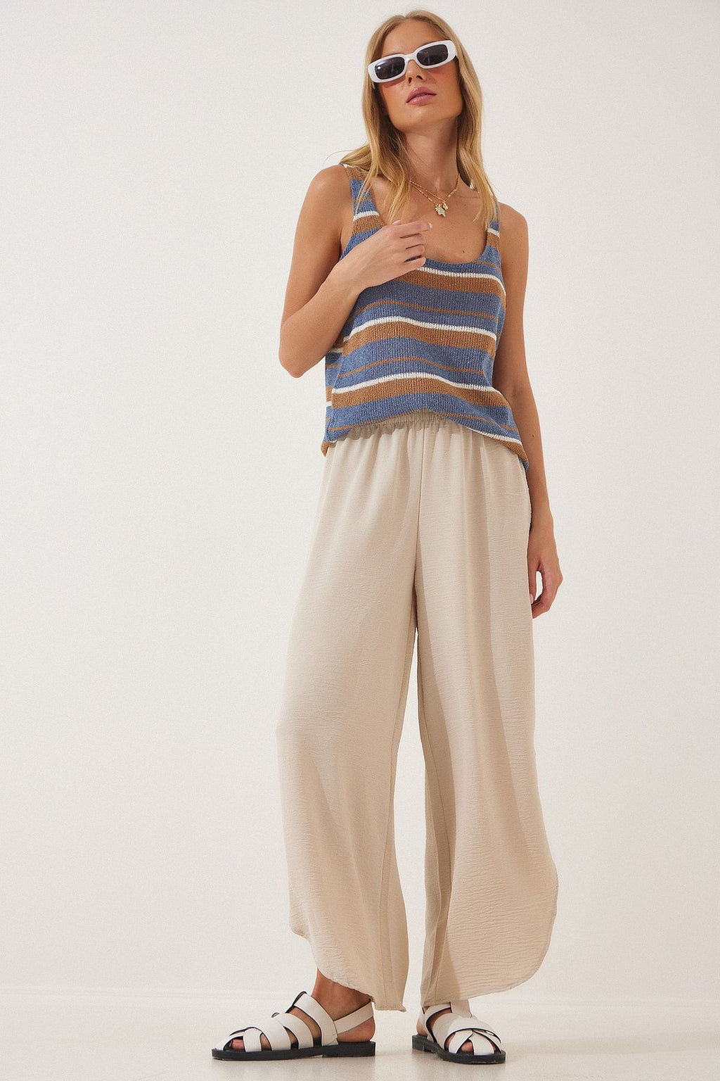 Kadın Krem Yandan Yırtmaçlı Ayrobin Şalvar Pantolon DE00001
