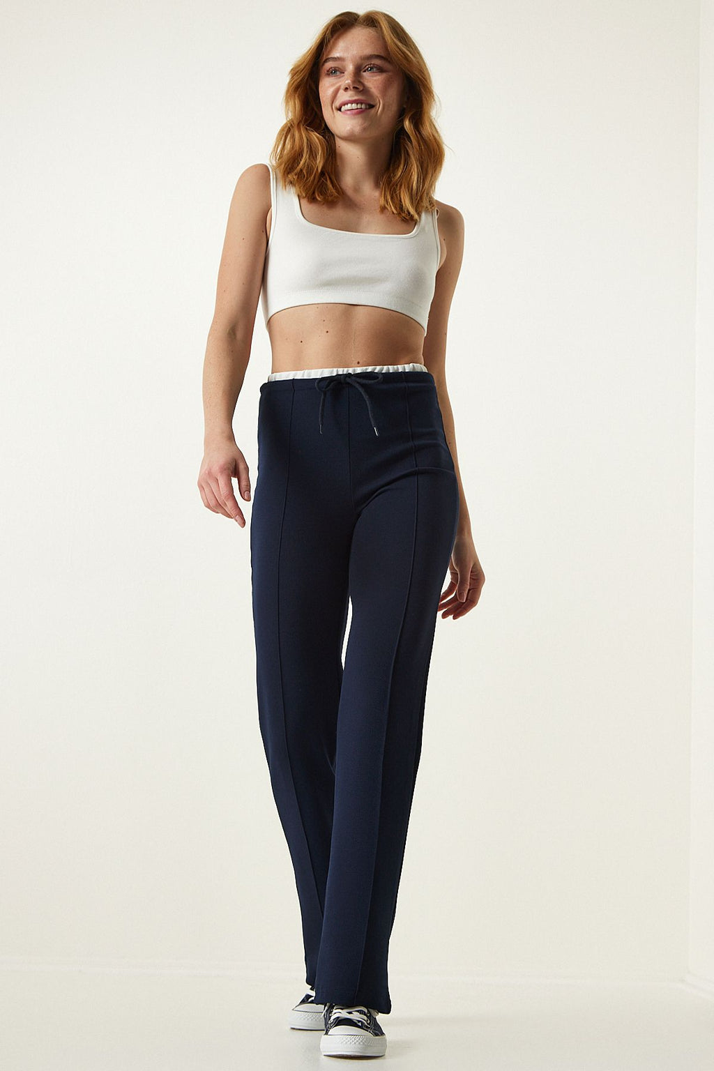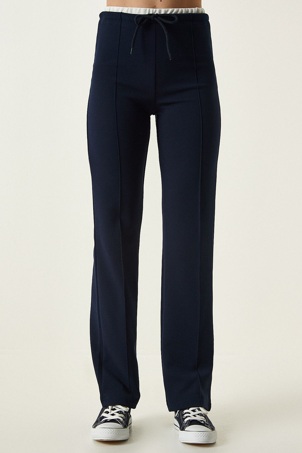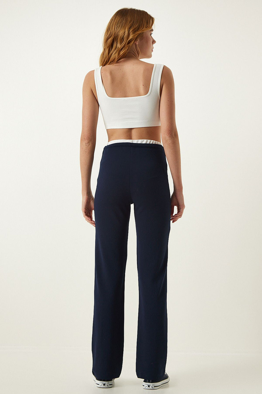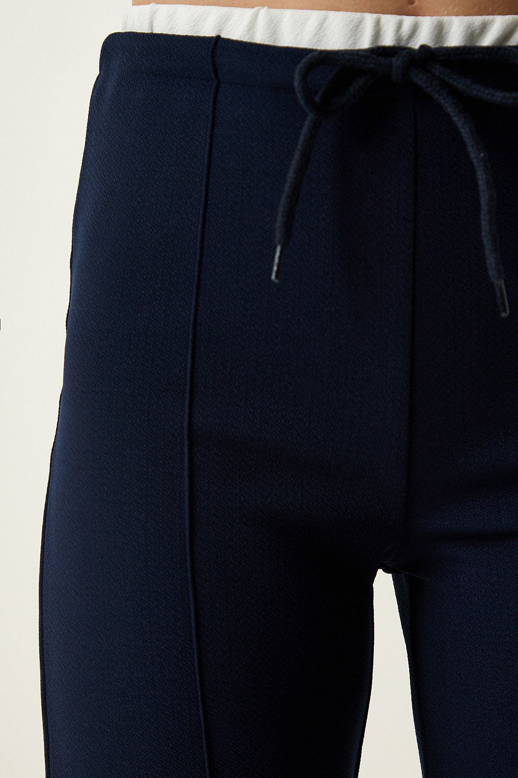 Kadın Lacivert Bağlama Detaylı Örme Pantolon RV00157