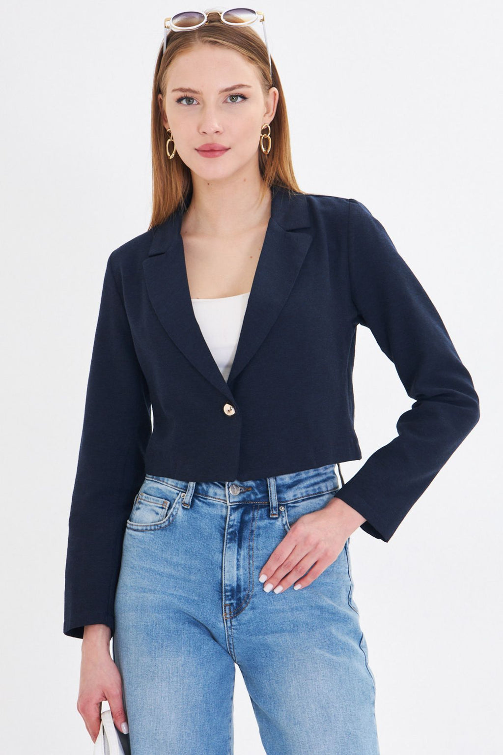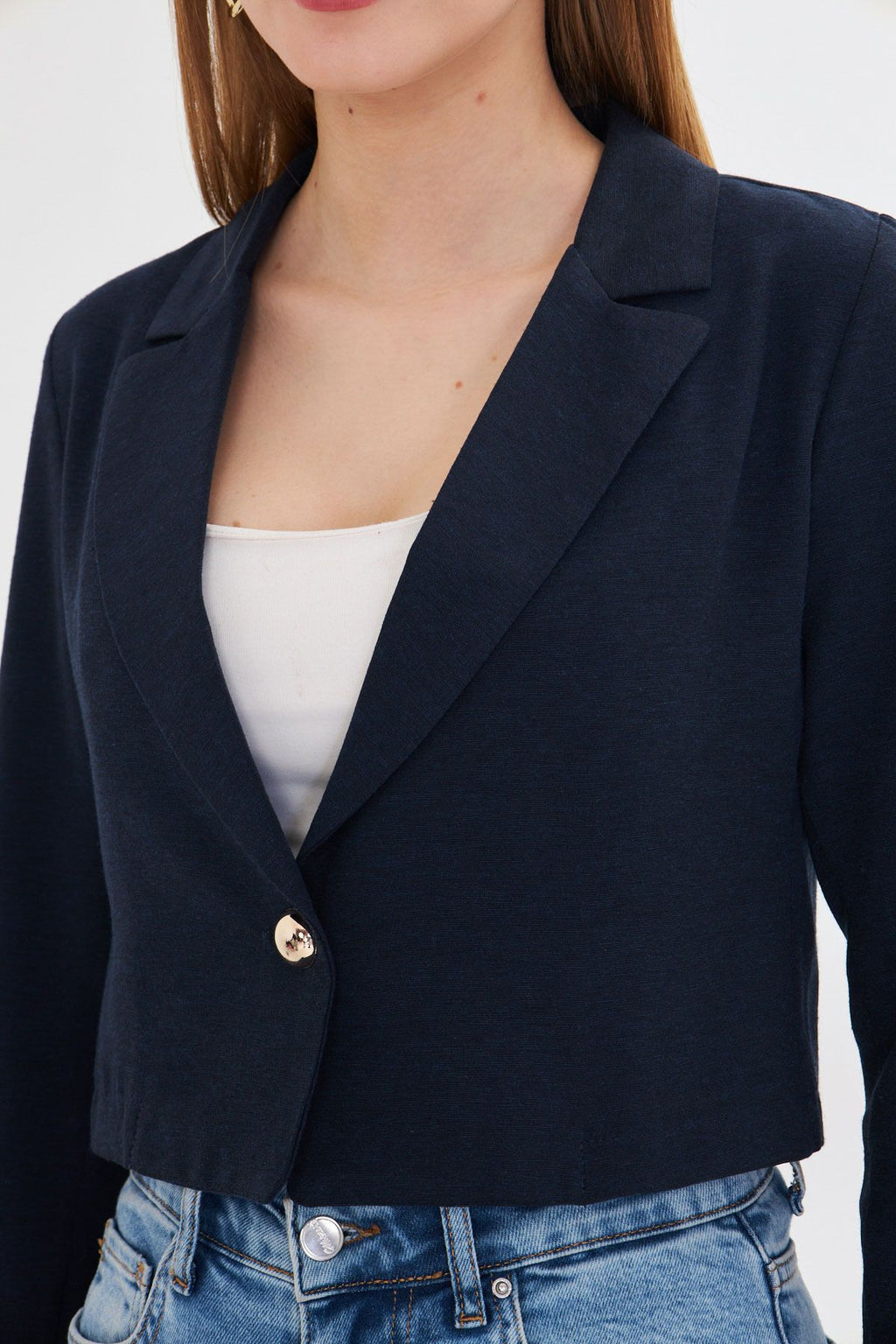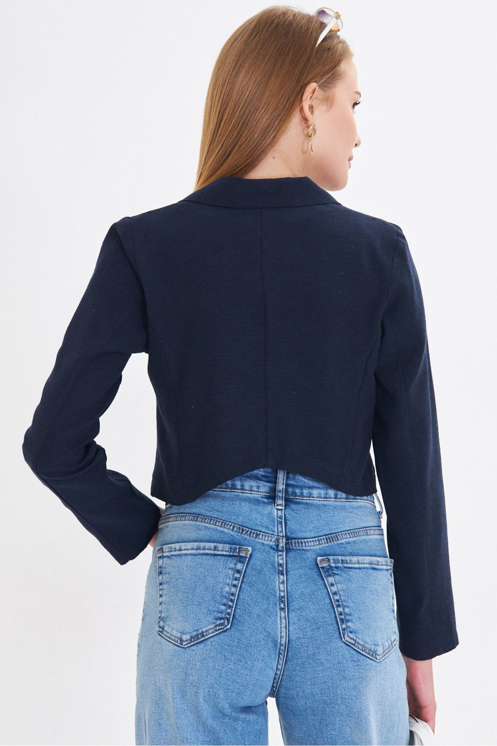 Kadın Lacivert Tek Düğmeli Crop Ceket ARM-23Y001064