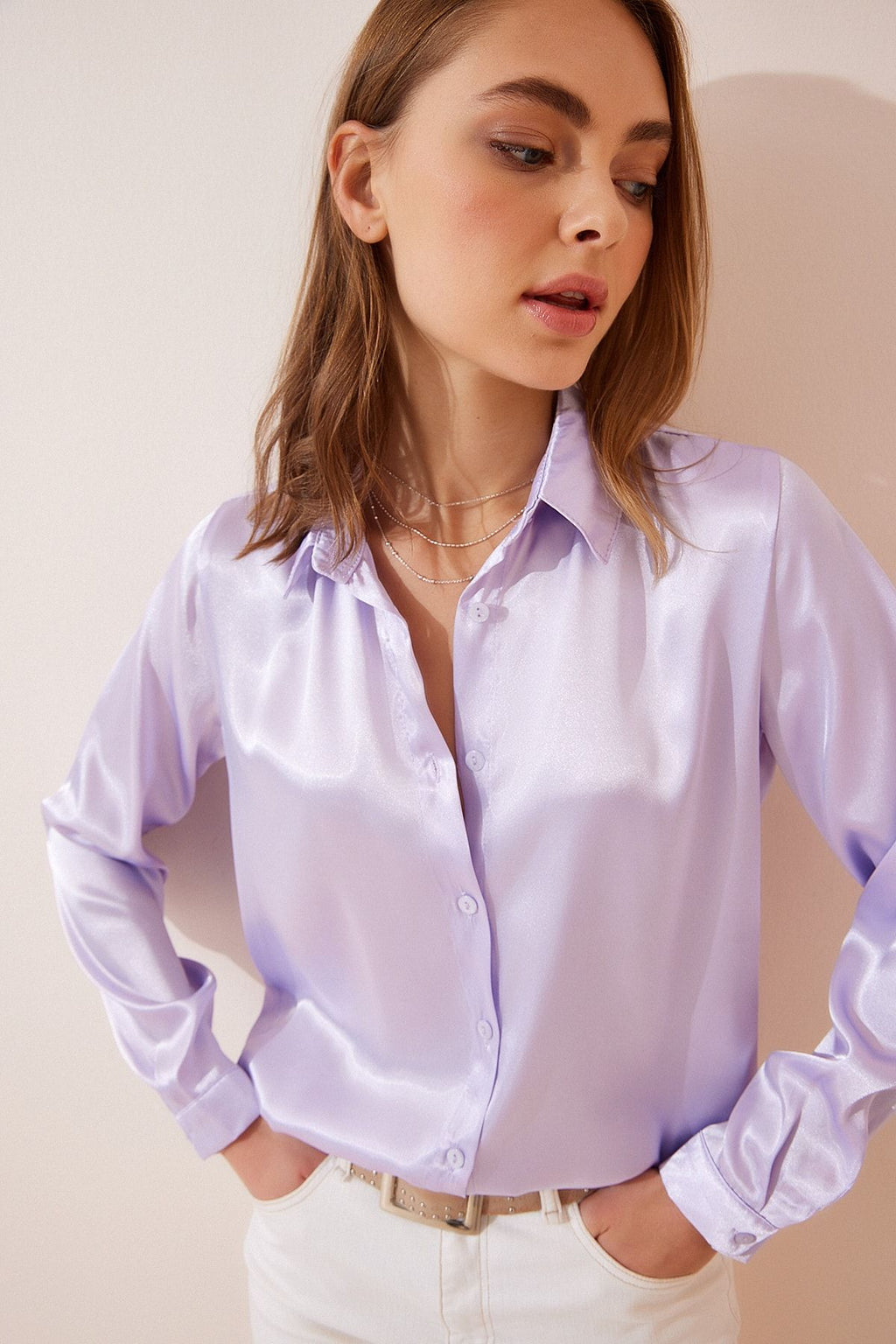 Kadın Lila Hafif Dökümlü Saten Yüzeyli Gömlek DD00990
