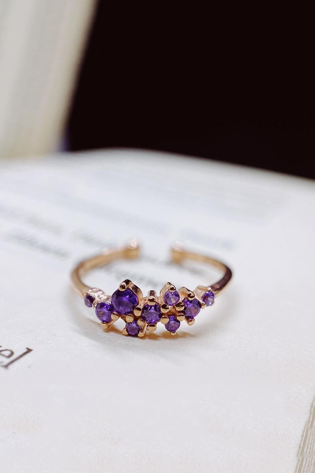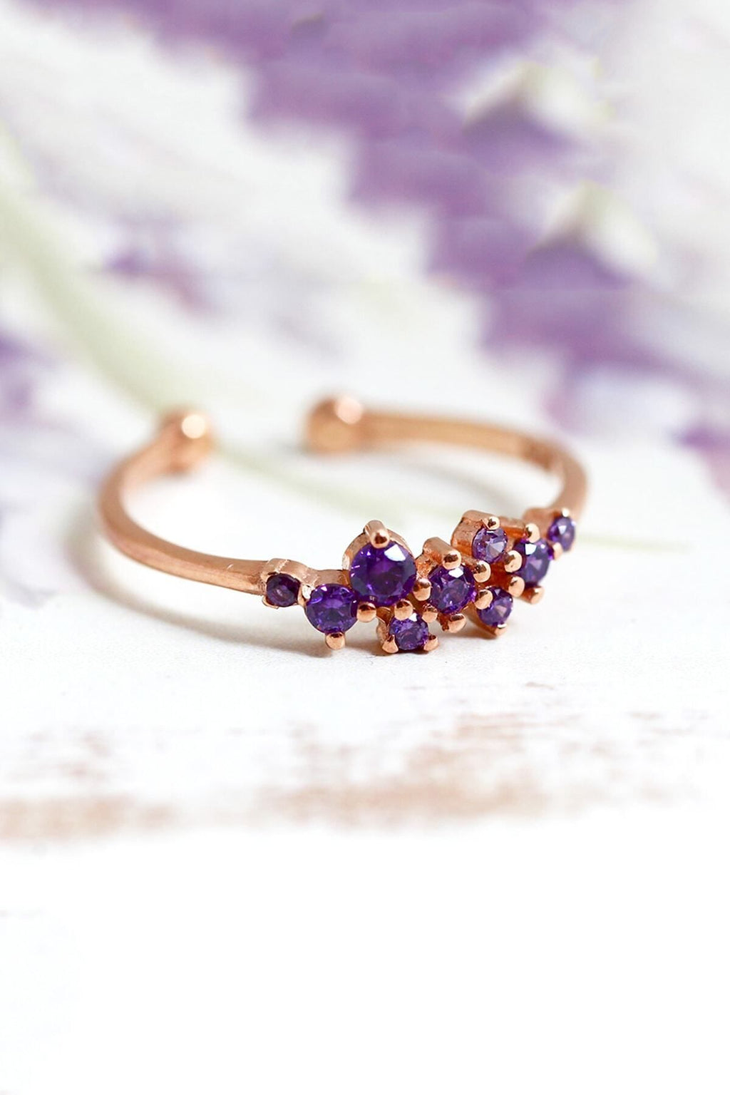 Female Pink Purple Stone Minimally Adjustable Woman 14 K Rose Gold Plated Ring