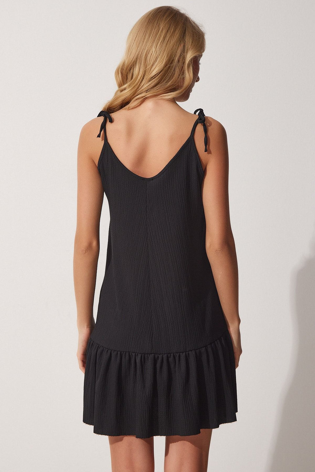 Kadın Siyah Bağlamalı Askılı Yazlık Örme Elbise FU00002