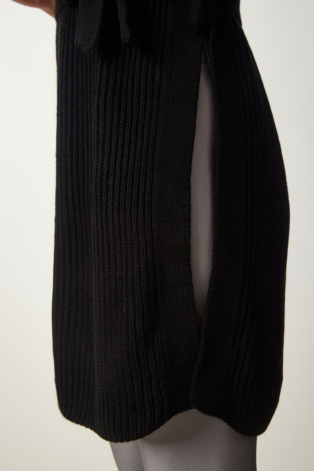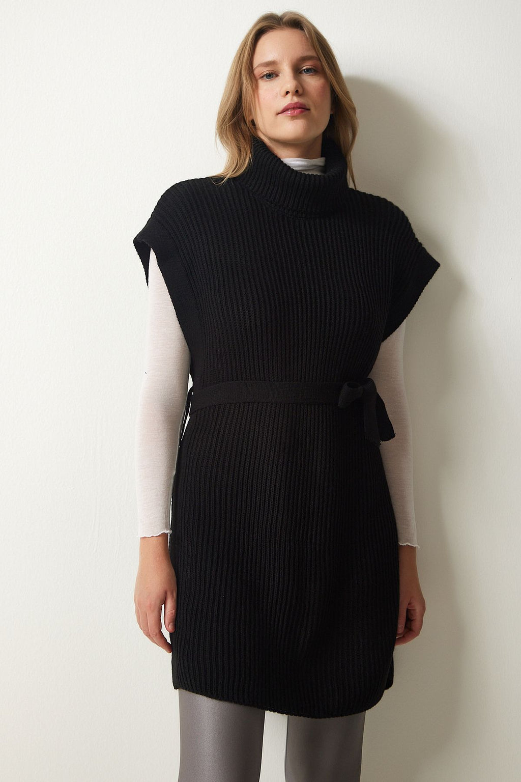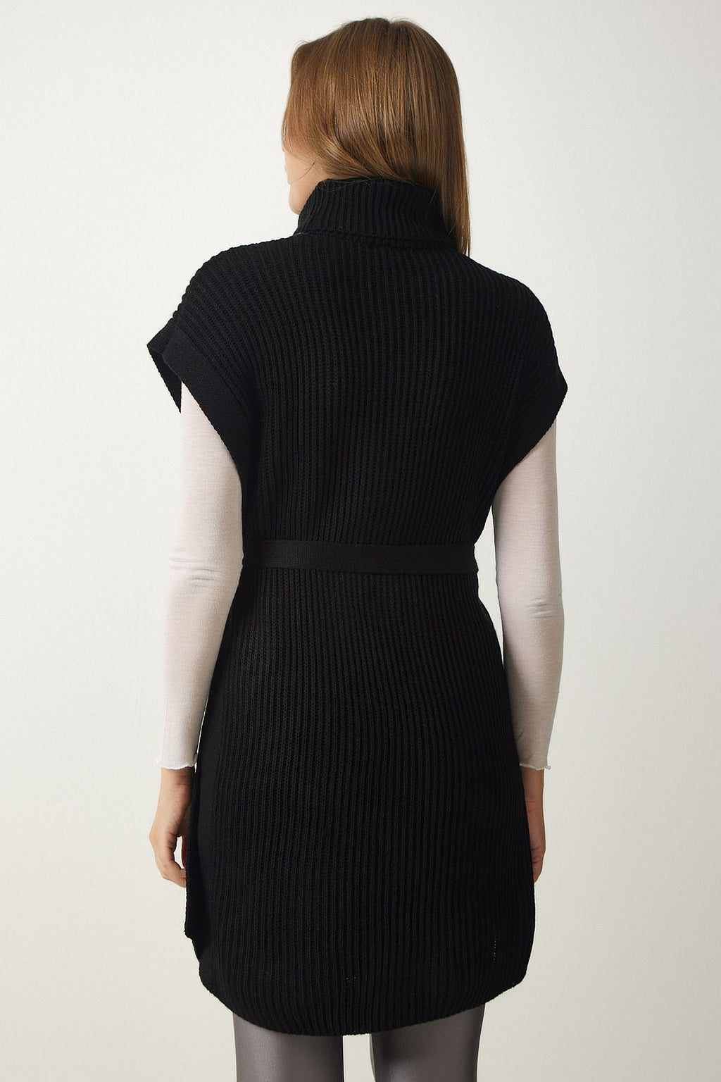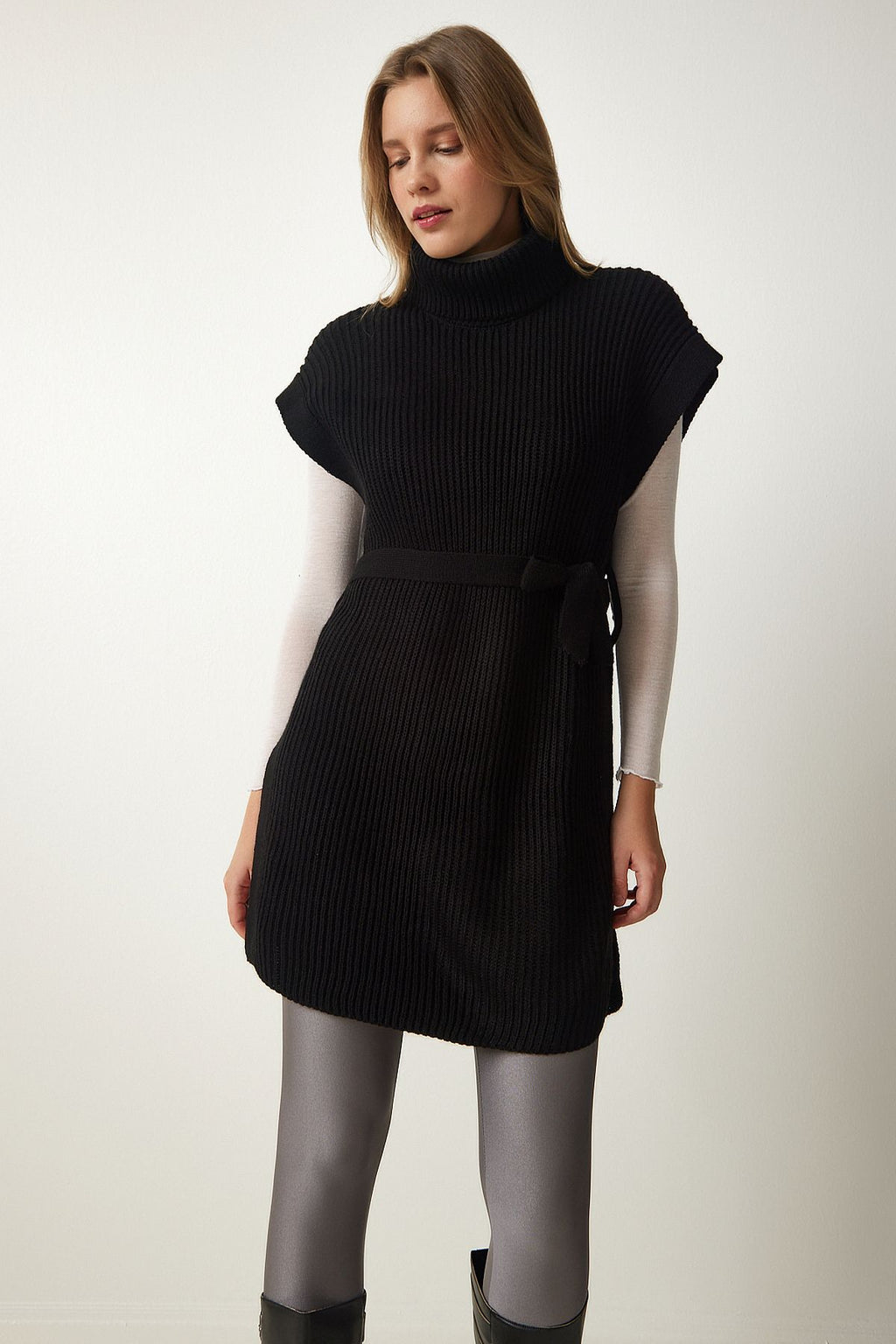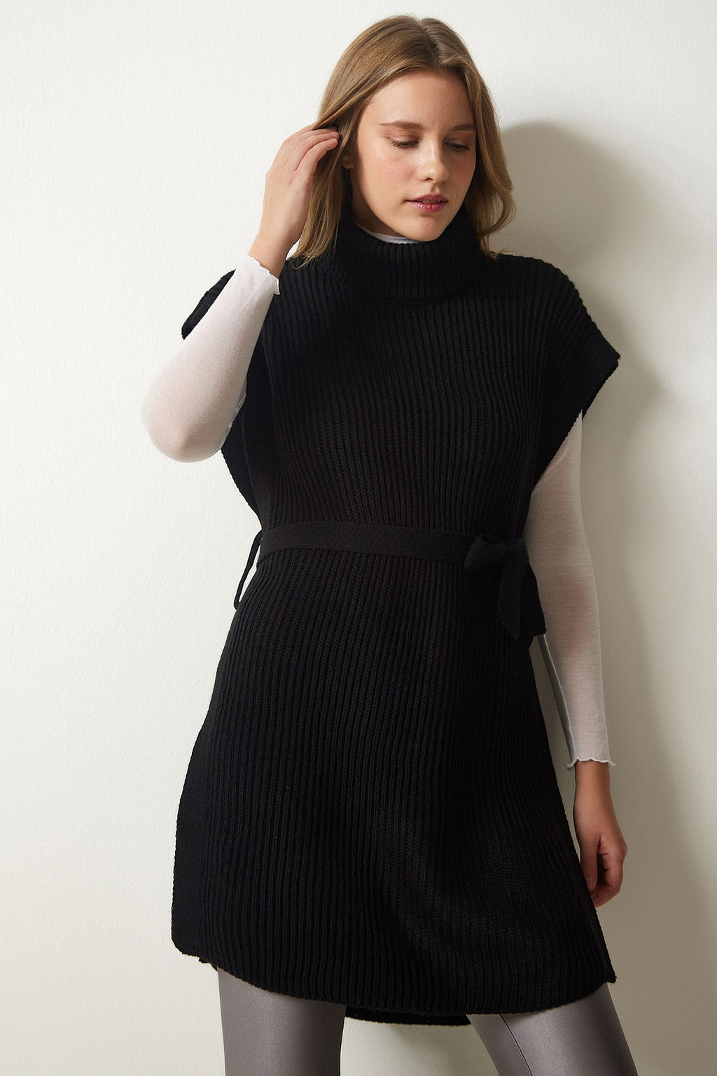 Kadın Siyah Balıkçı Yaka Kemerli Triko Süveter CI00099