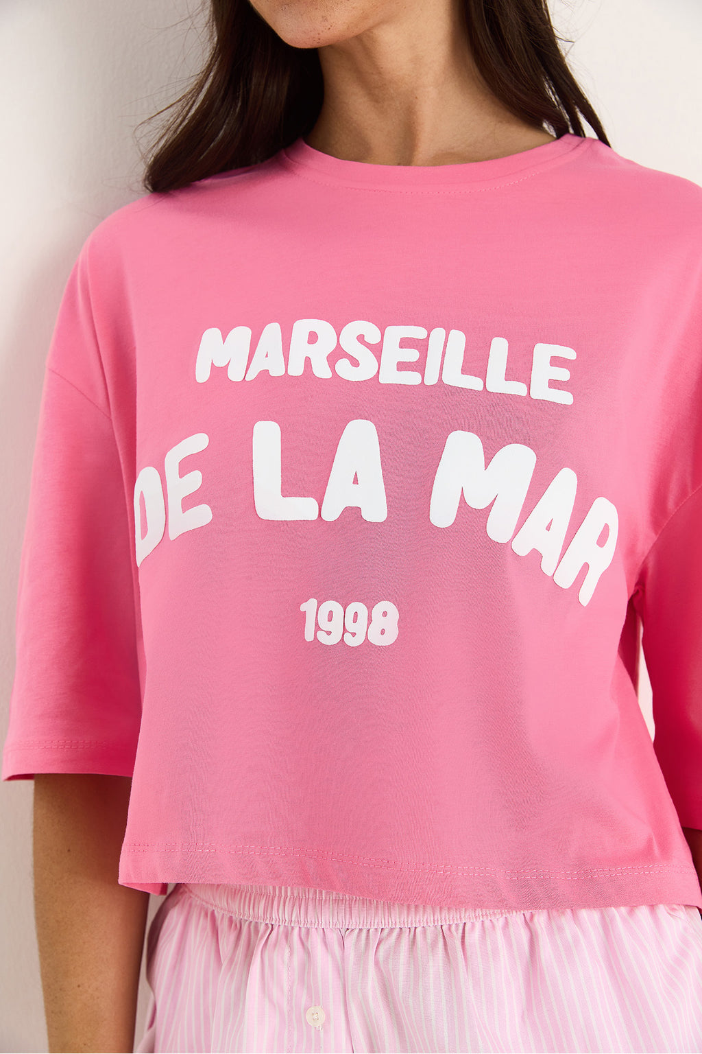 Kadın Yazı Baskılı Bisiklet Yaka %100 Pamuklu Crop T-Shirt 6705 60283450