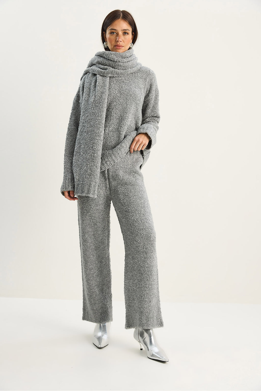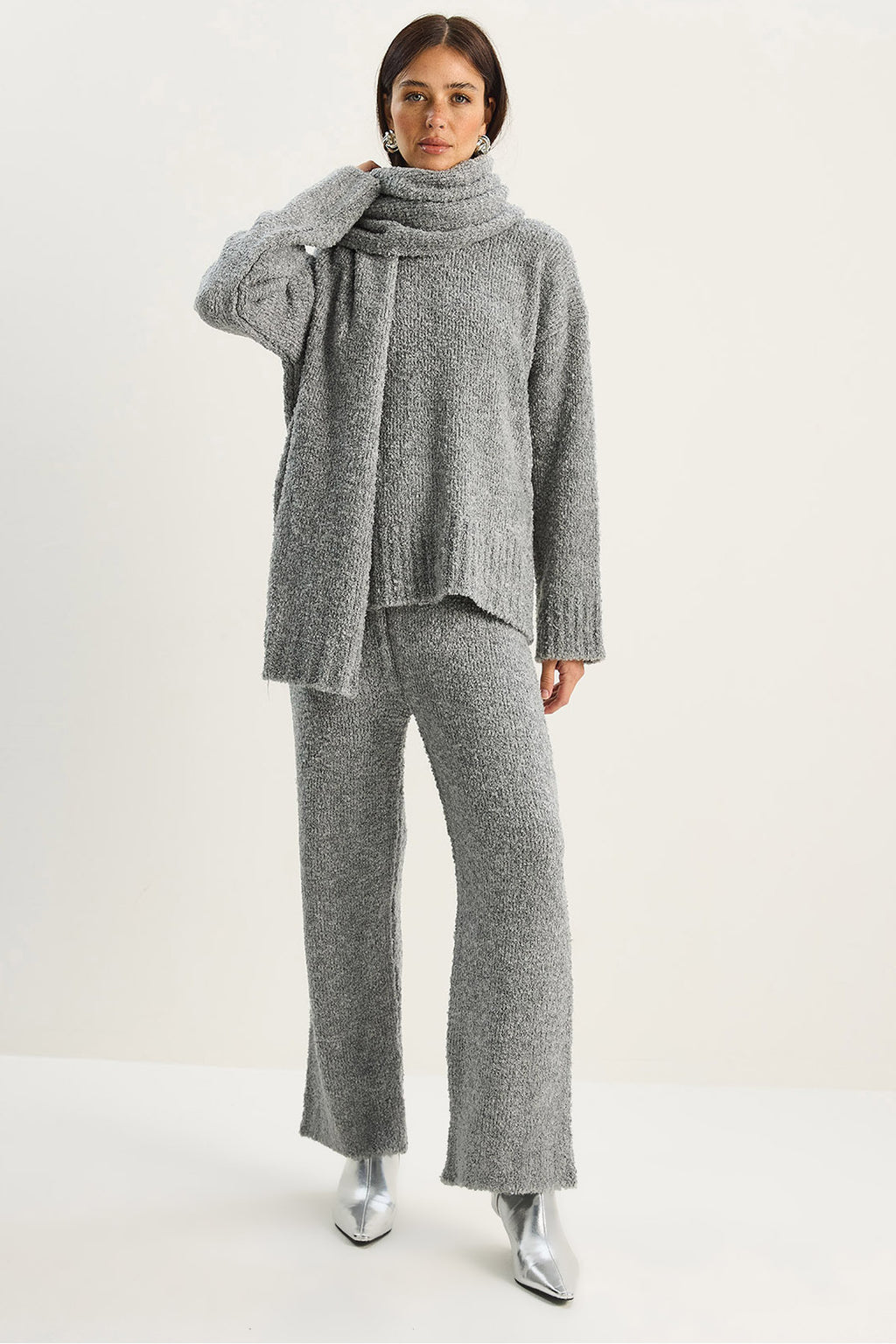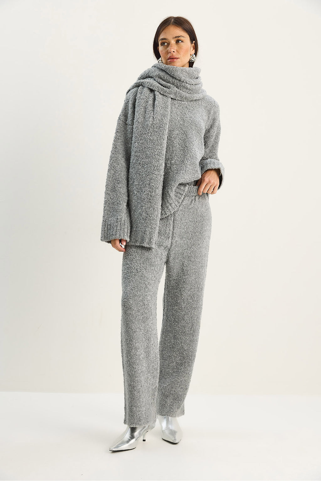Kadın Yumuşak Dokulu Rahat Kesim Atkılı Triko Takım 2480 60283755