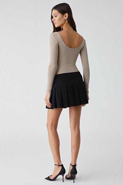 Leary Women's High Waist Interlock Belt Buckle Pleated Black Mini Skirt