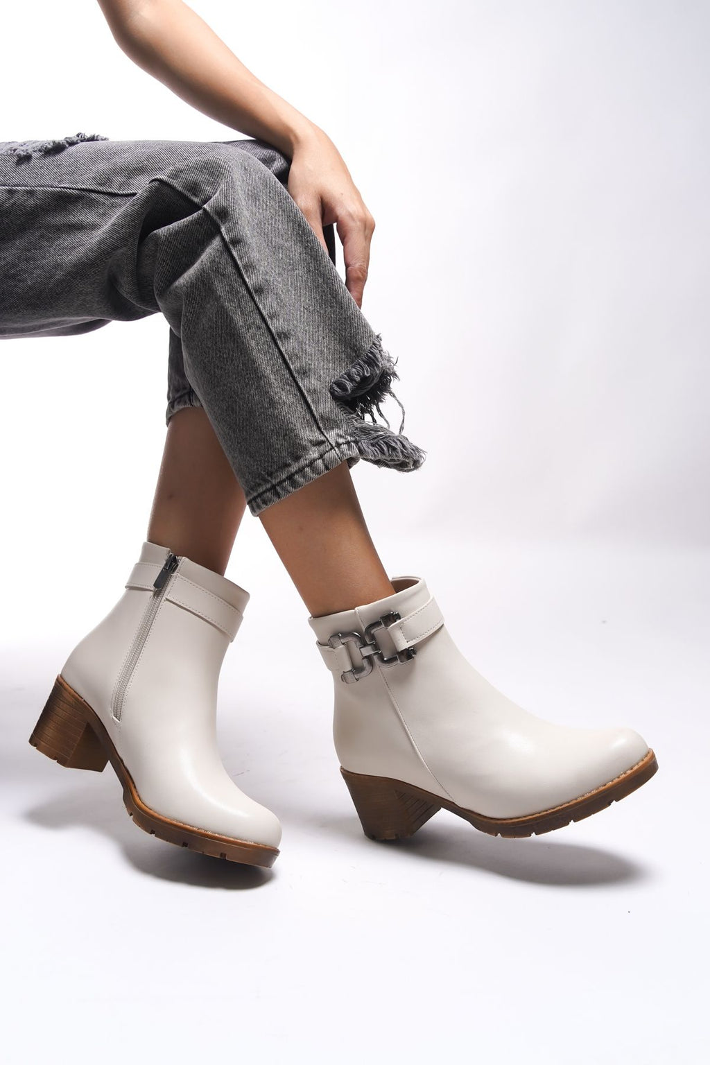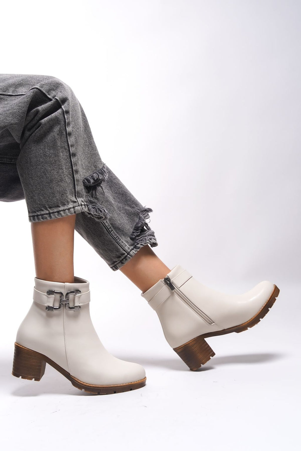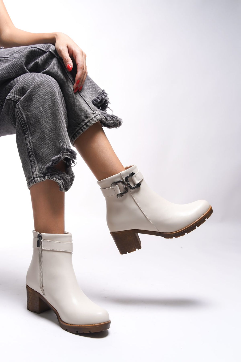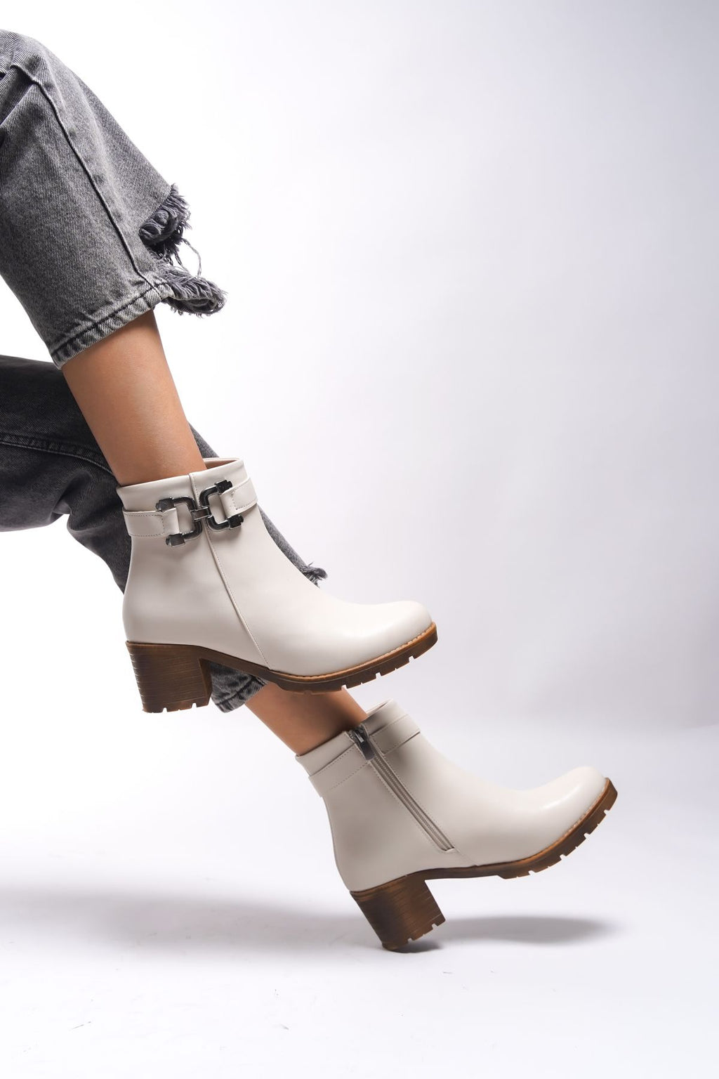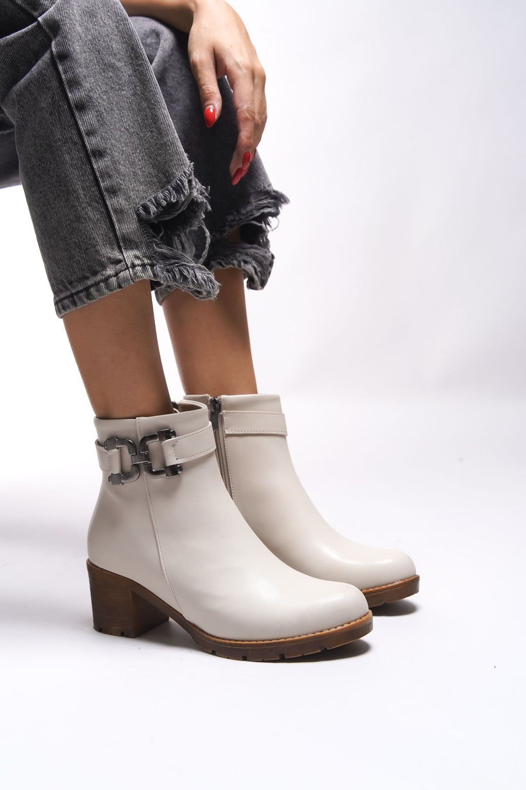 Libthana Women's Chain Detail Heels Bot 0012725 Beige Skin