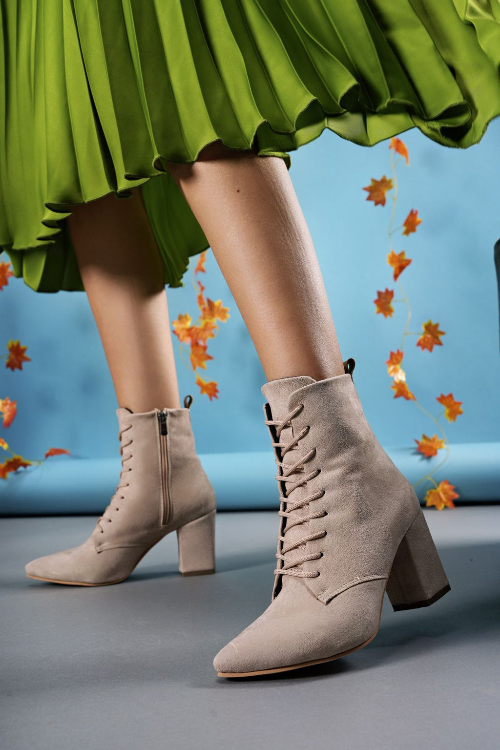 Lilethnora Kadın Topuklu Bot 0012333 Ten Süet