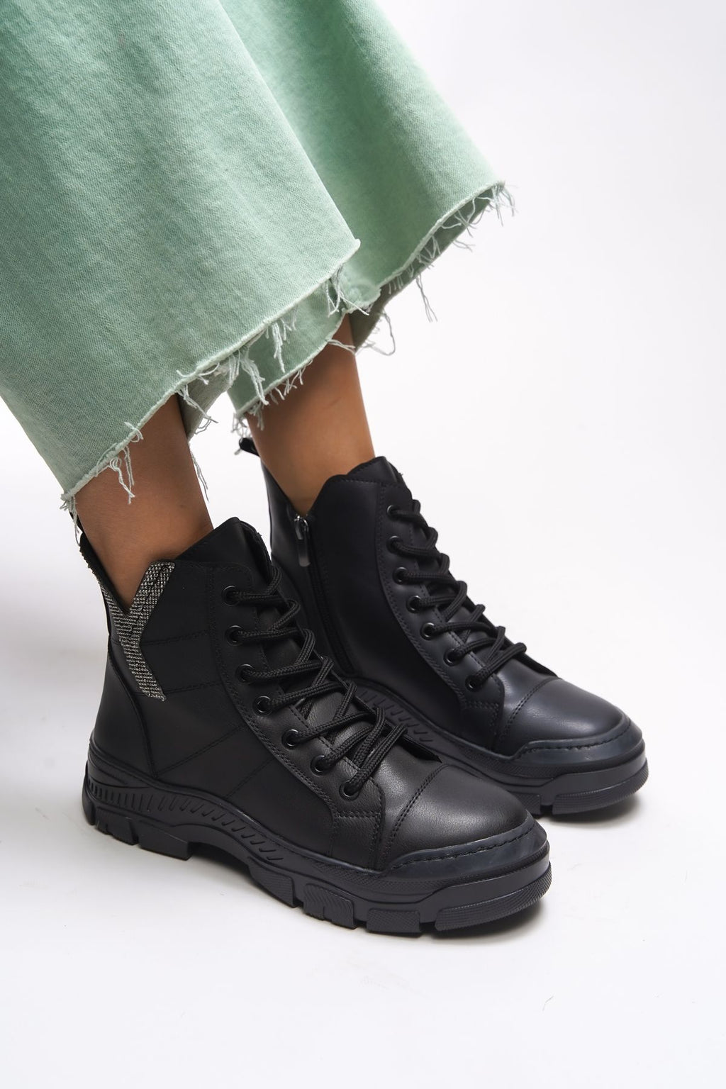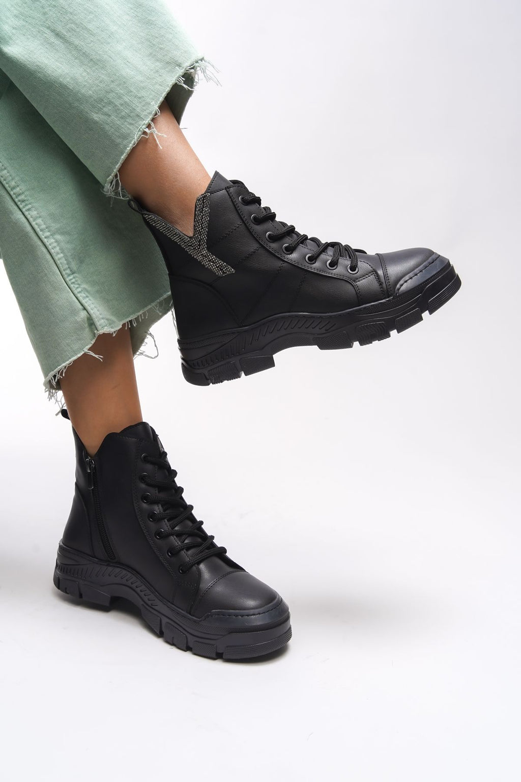 Maerlira Women's Chain and Buckle Detail Bot Black Skin