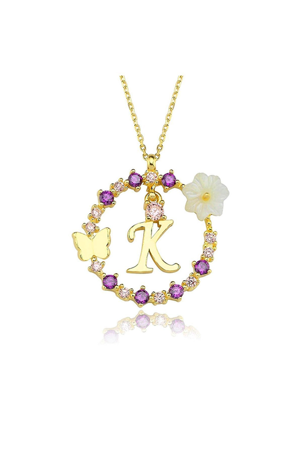 Magnolia Flower Dreams Glitter 14k Gold K Letter Women's Necklace