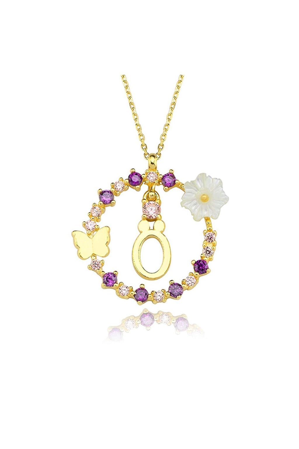 Magnolia Flower Dreams Glitter 14k Gold Ö Letter Women's Necklace