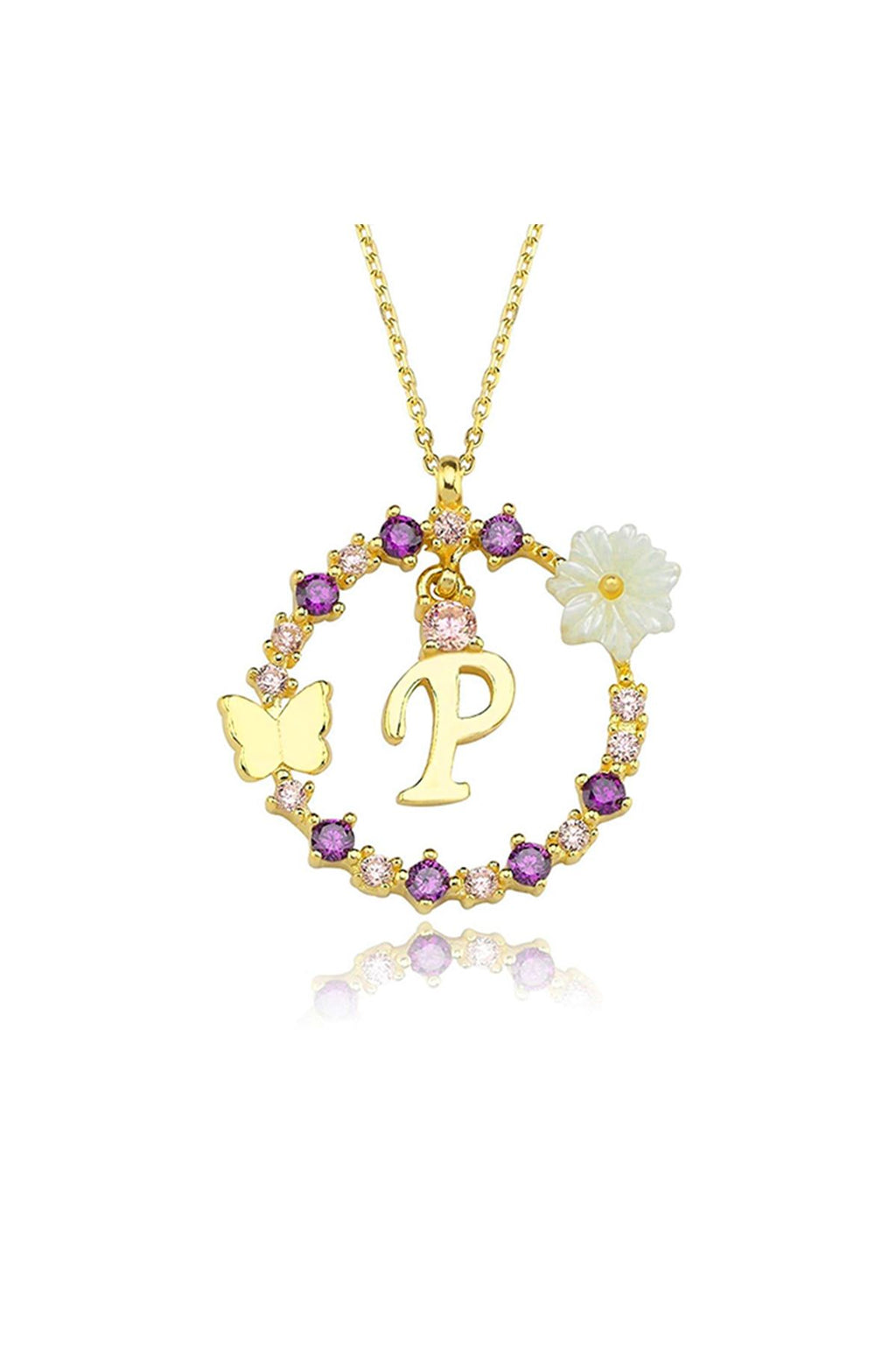 Magnolia Flower Dreams Glitter 14k Gold P letter Women Necklace