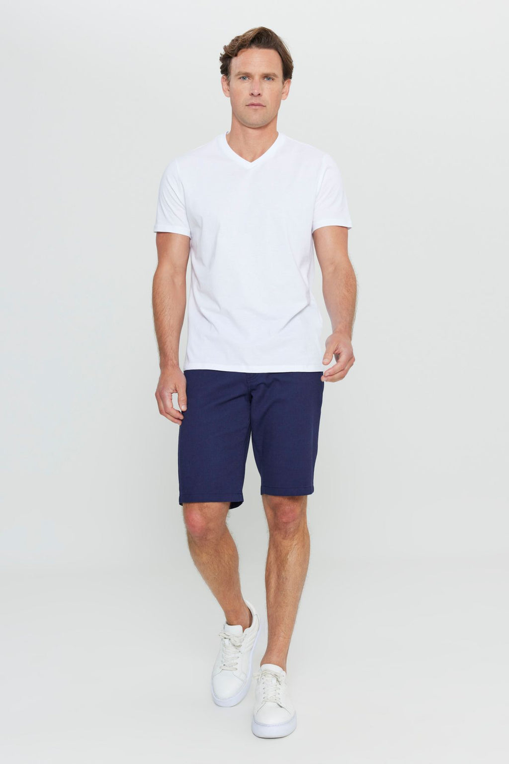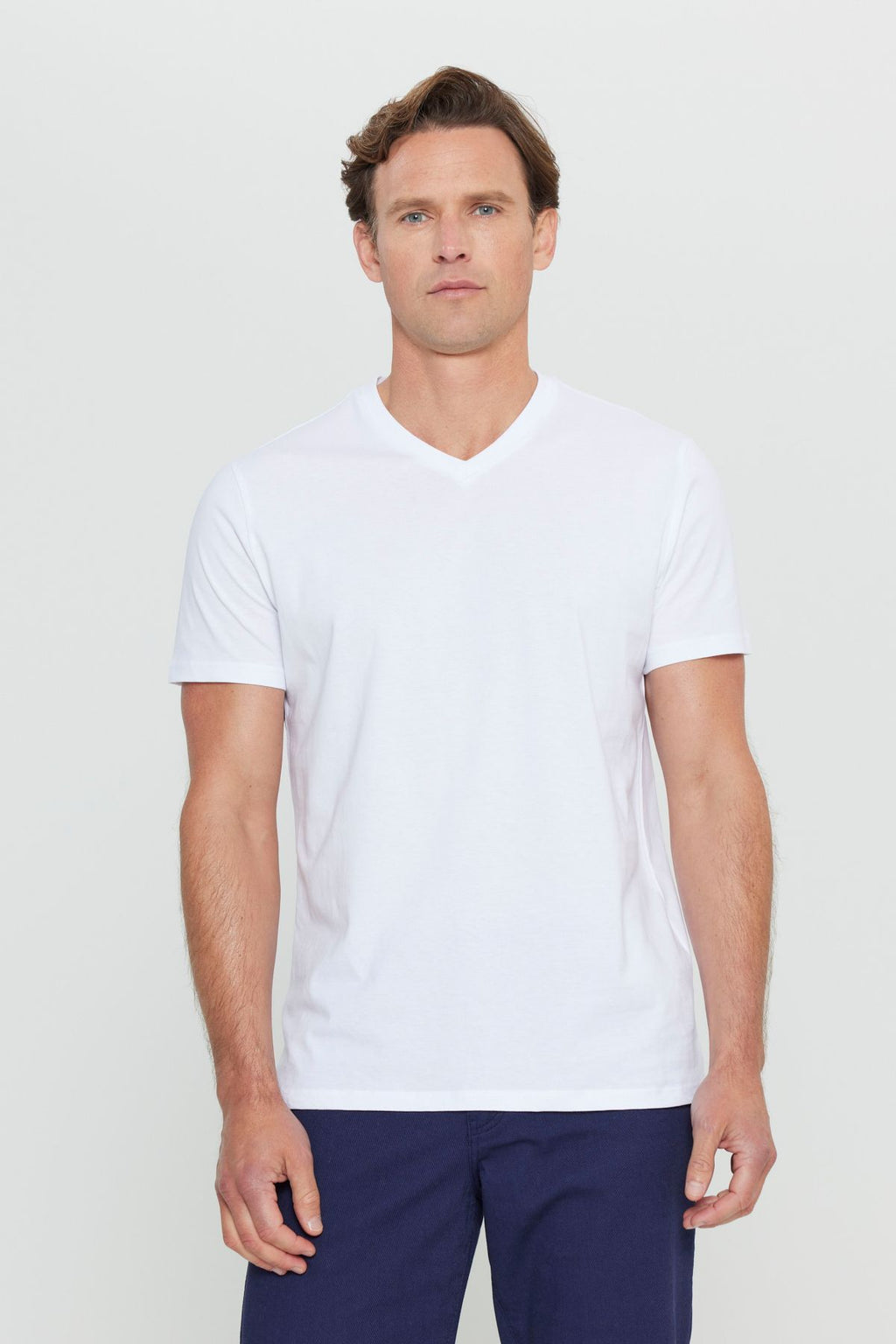 Male 100 %Cotton V -Neck White Slim Fit Narrow Cut T -shirt