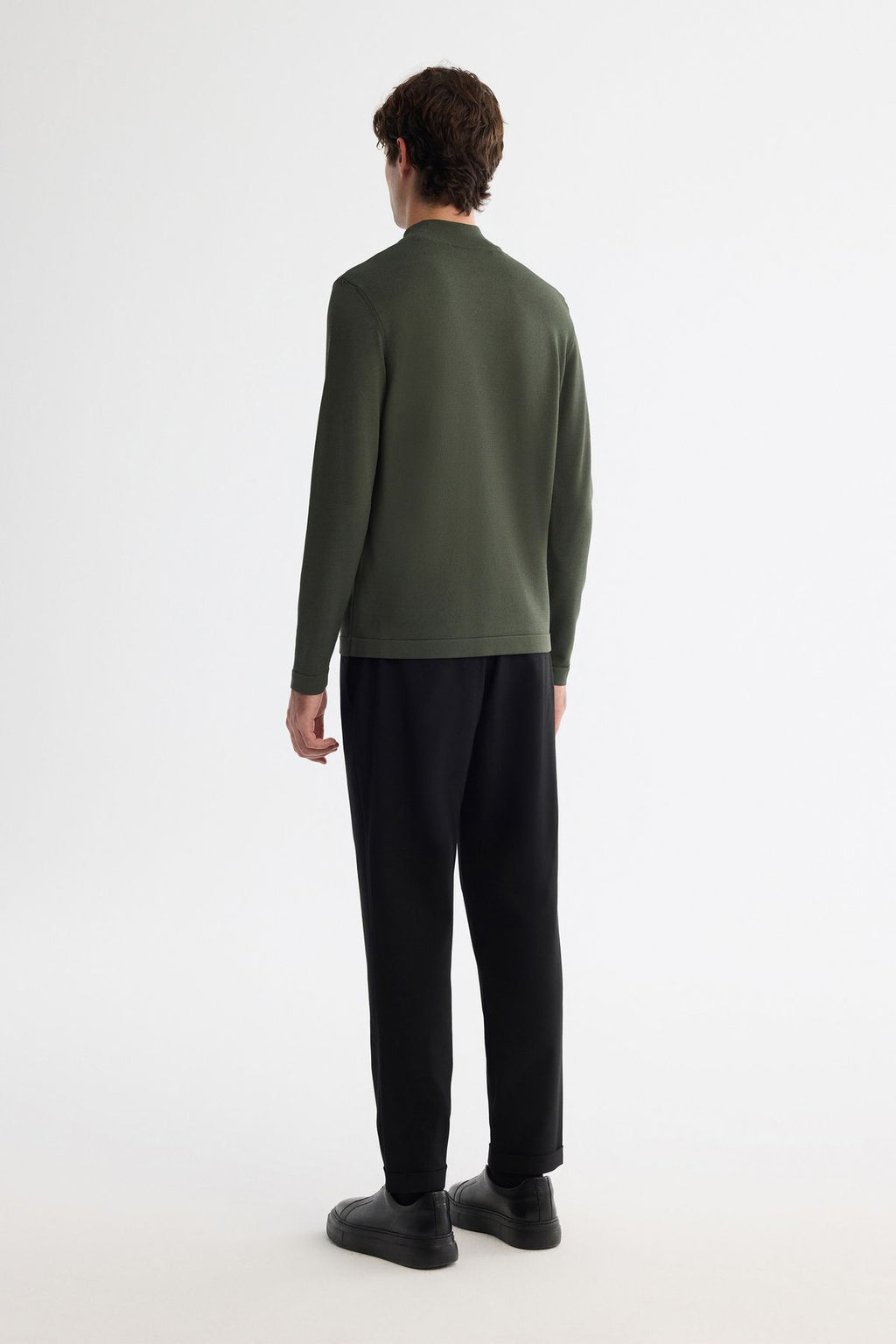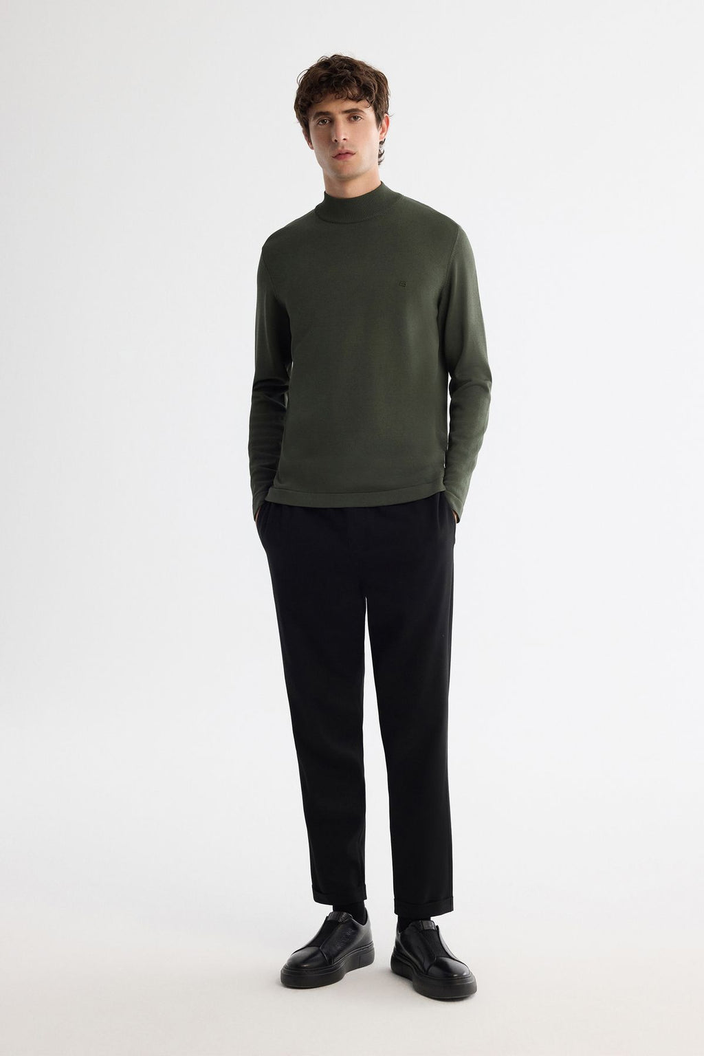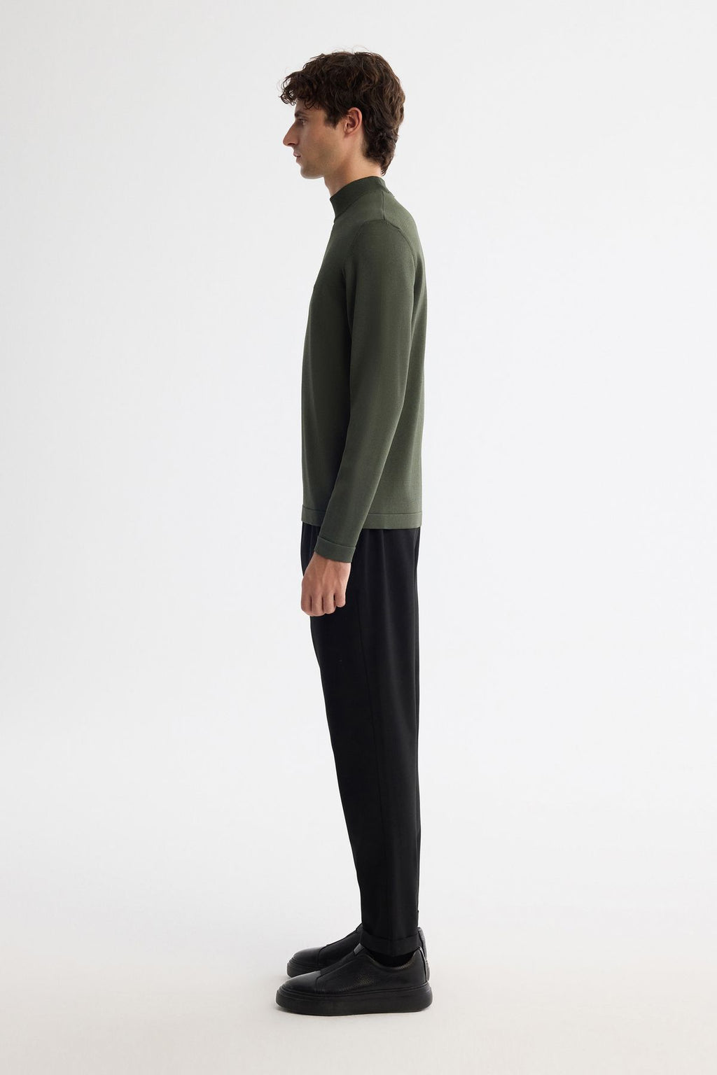 Male Khaki Half Fisherman Neck Rayon Triko Sweater A42y5100