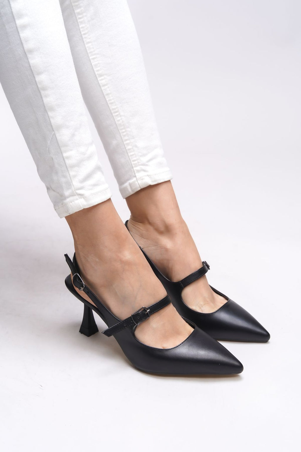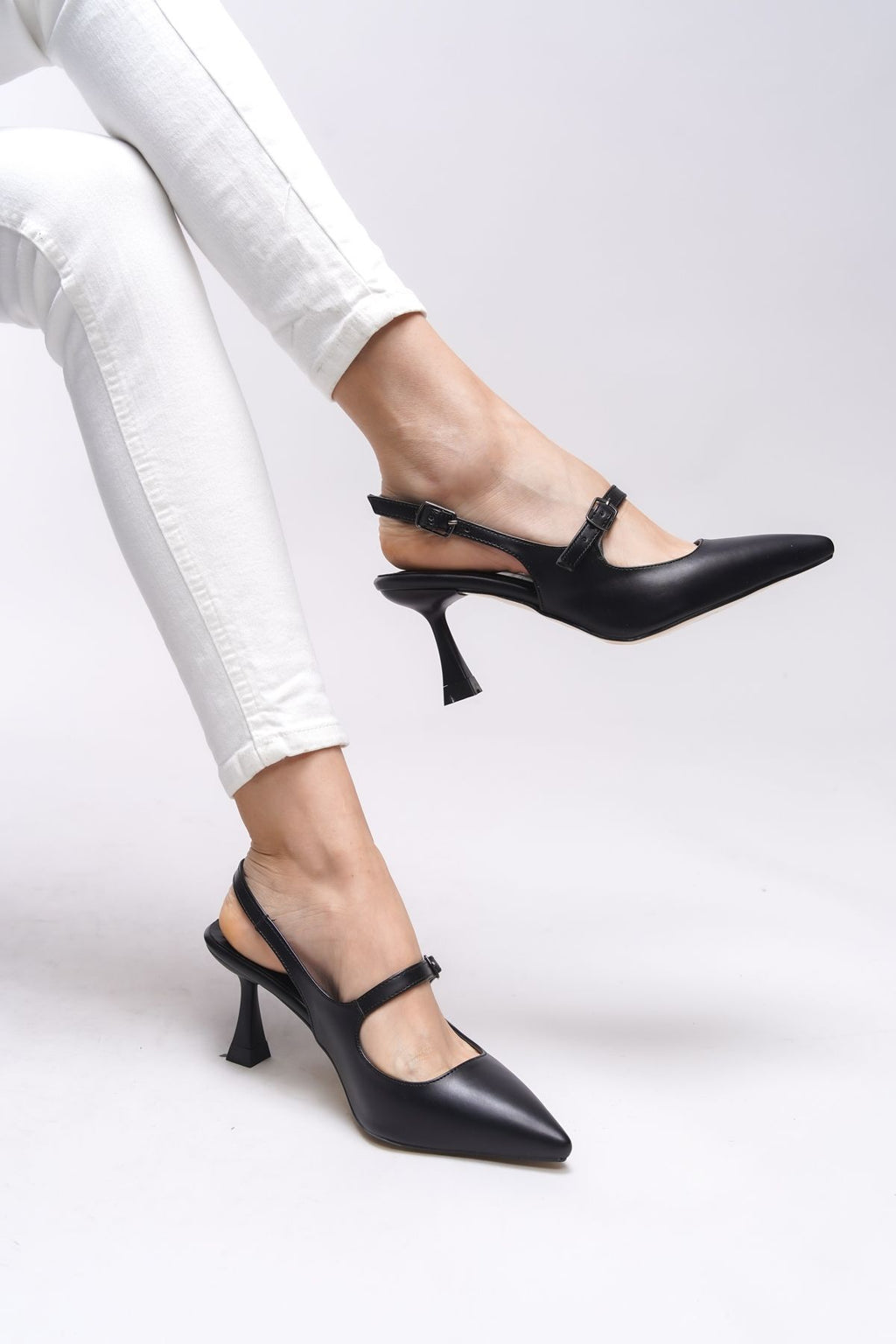 Melilendra Behind Woman Open Pointed Nose Stiletto 0012701 Black Skin