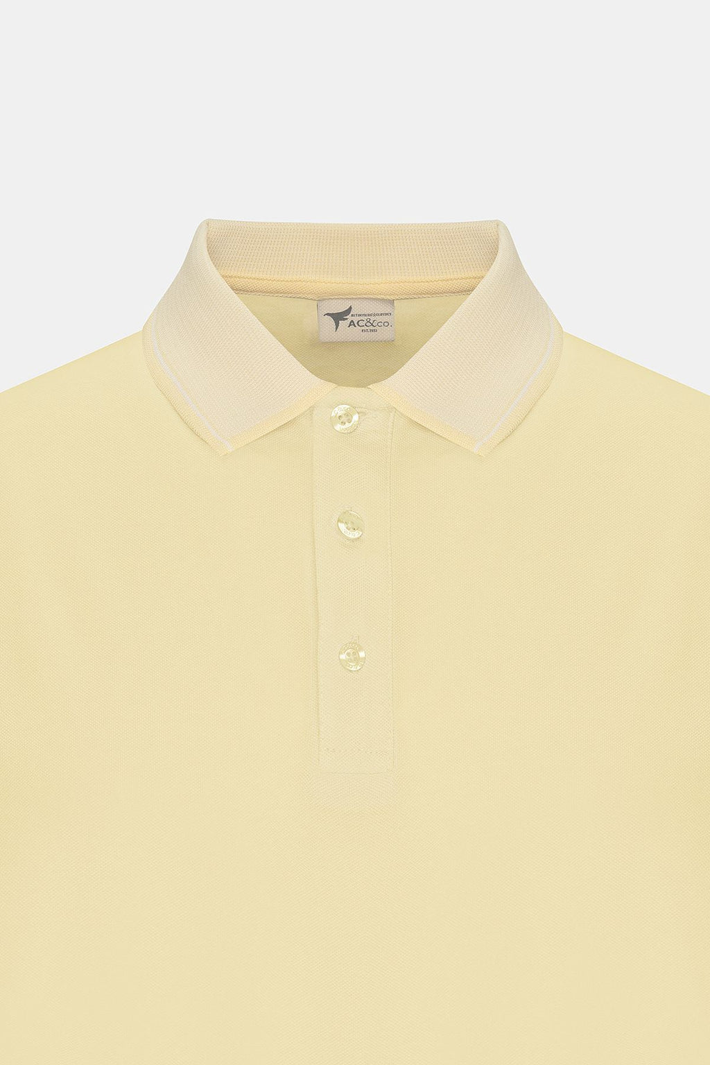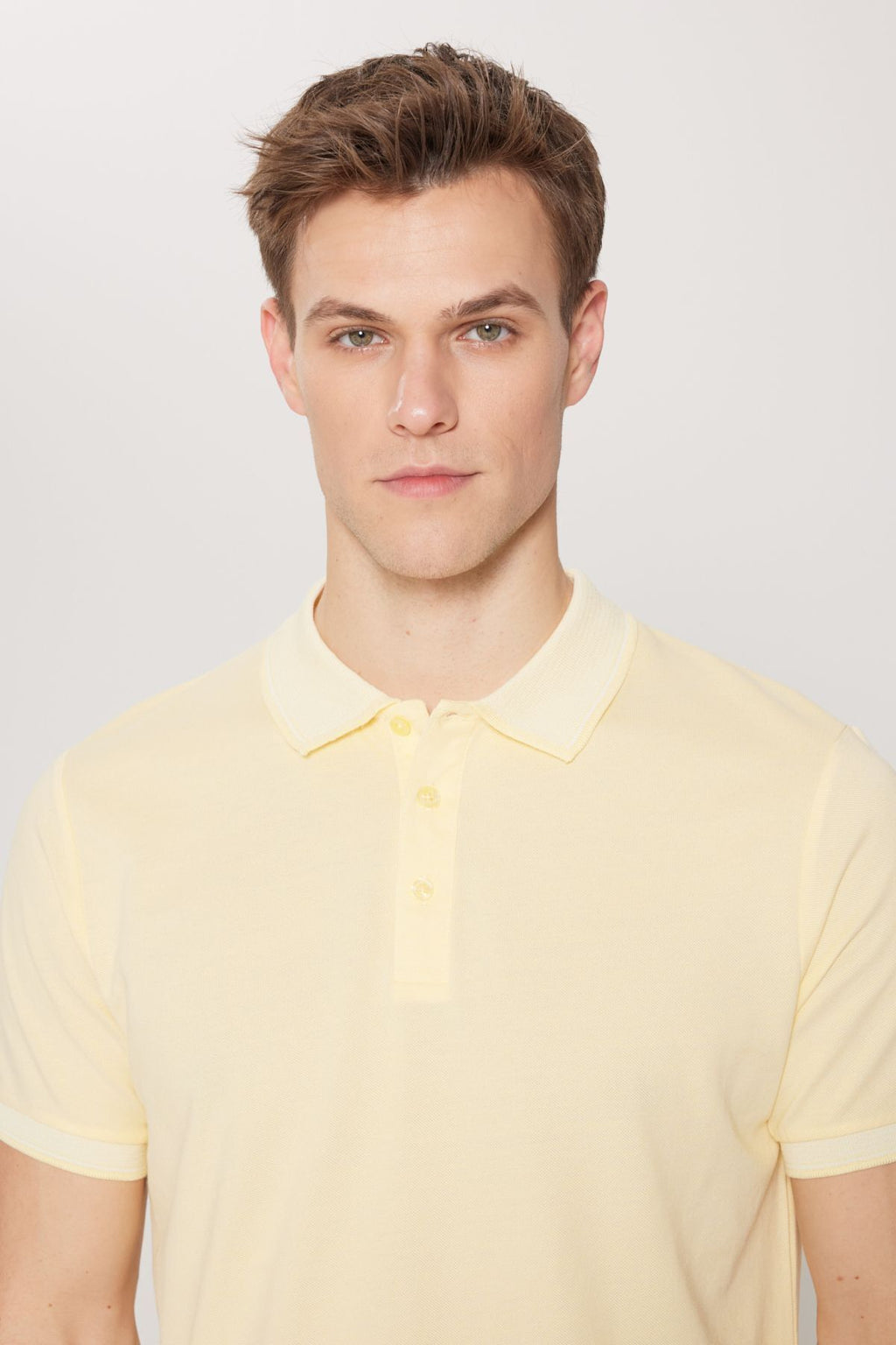 Men-drawn cotton fabric slim fit narrow cut yellow-white curled polo collar t-shirt