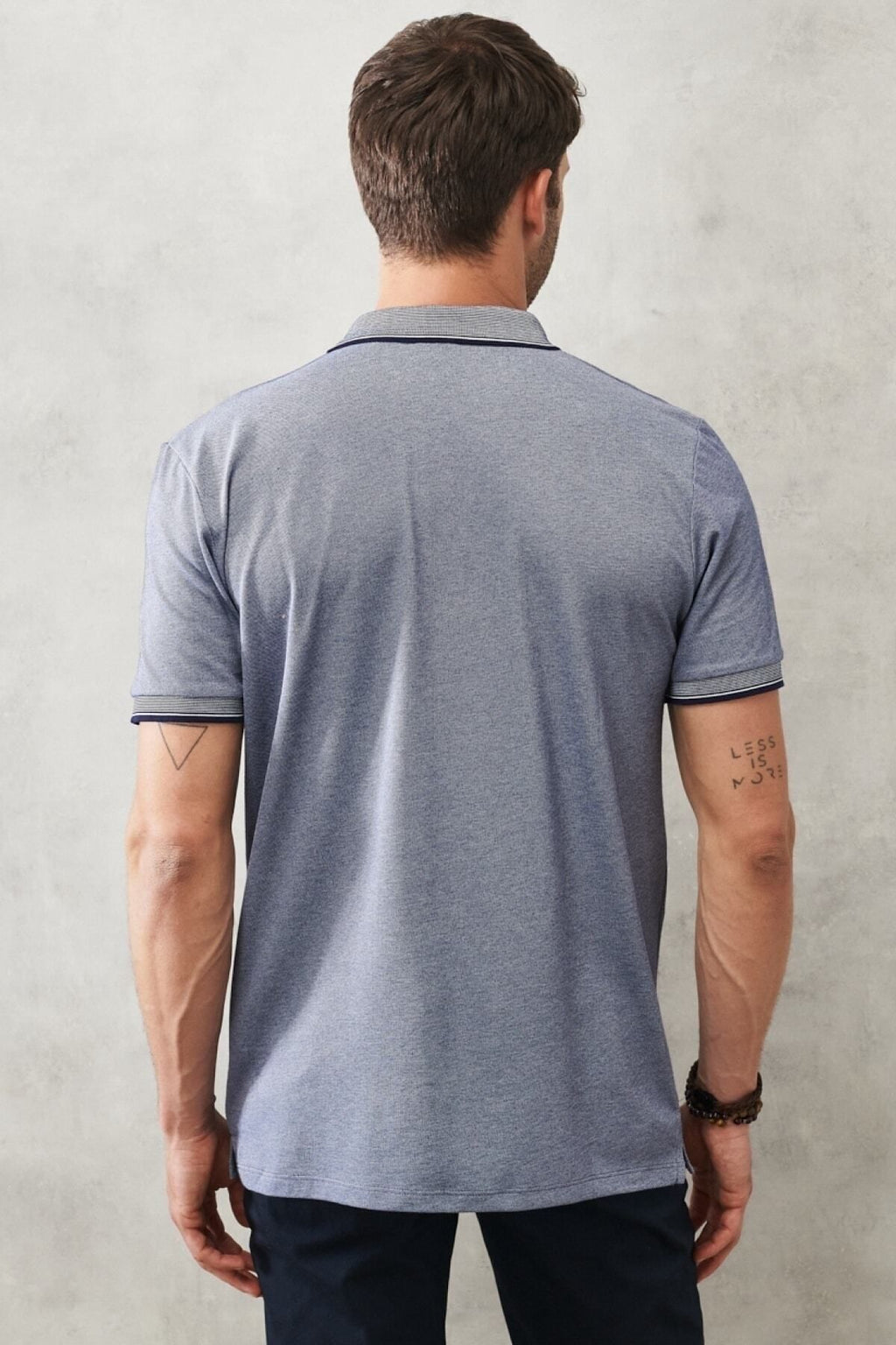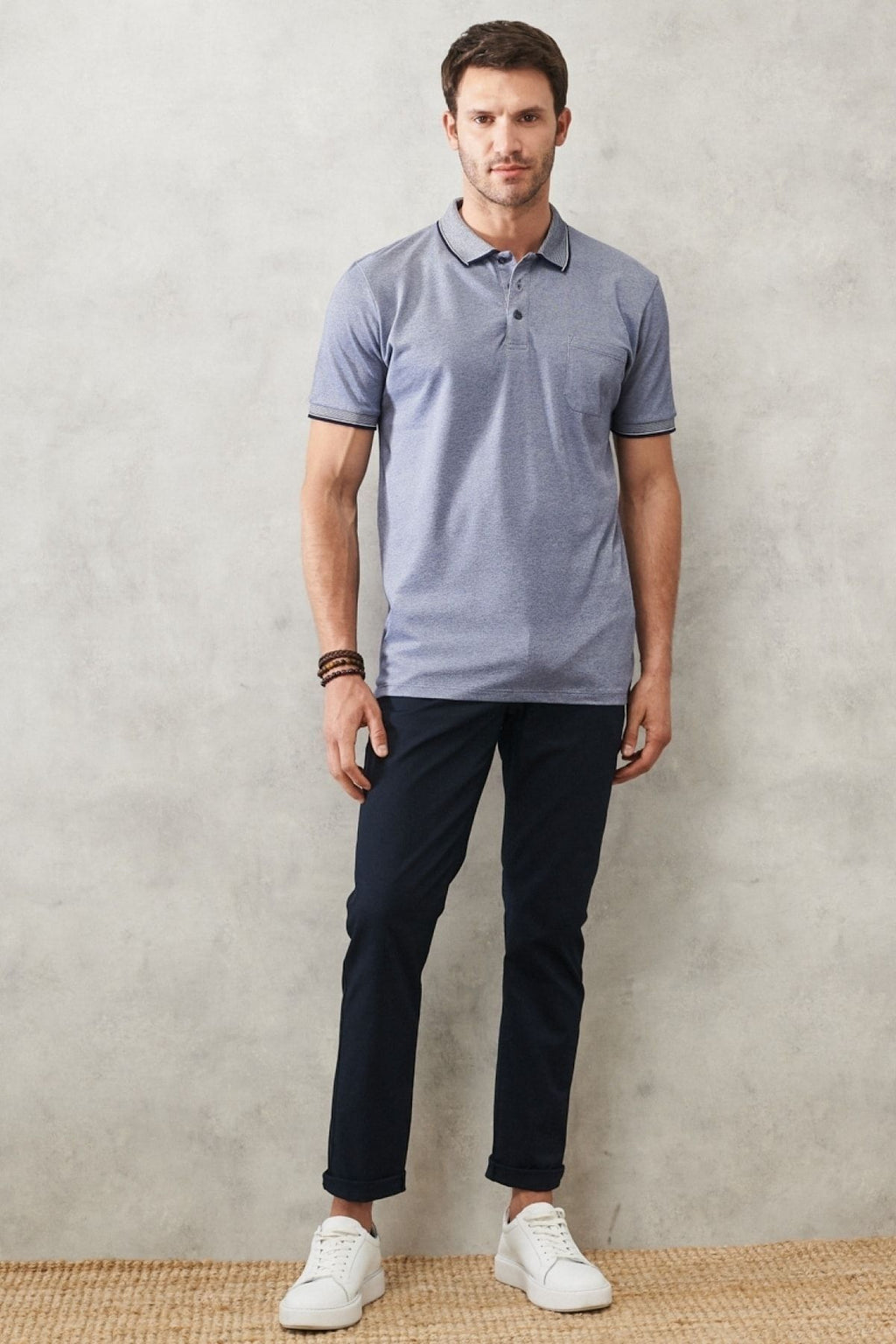 Men -Plugging Cotton Fabric Regular Fit Casual Cut Navy Blind Curlled Polo Yaka Pocket T -shirt