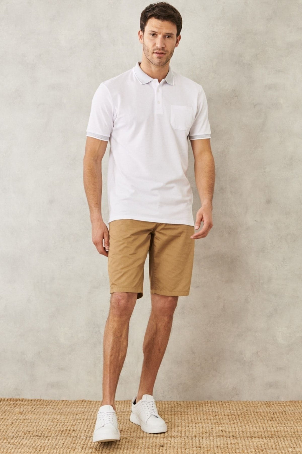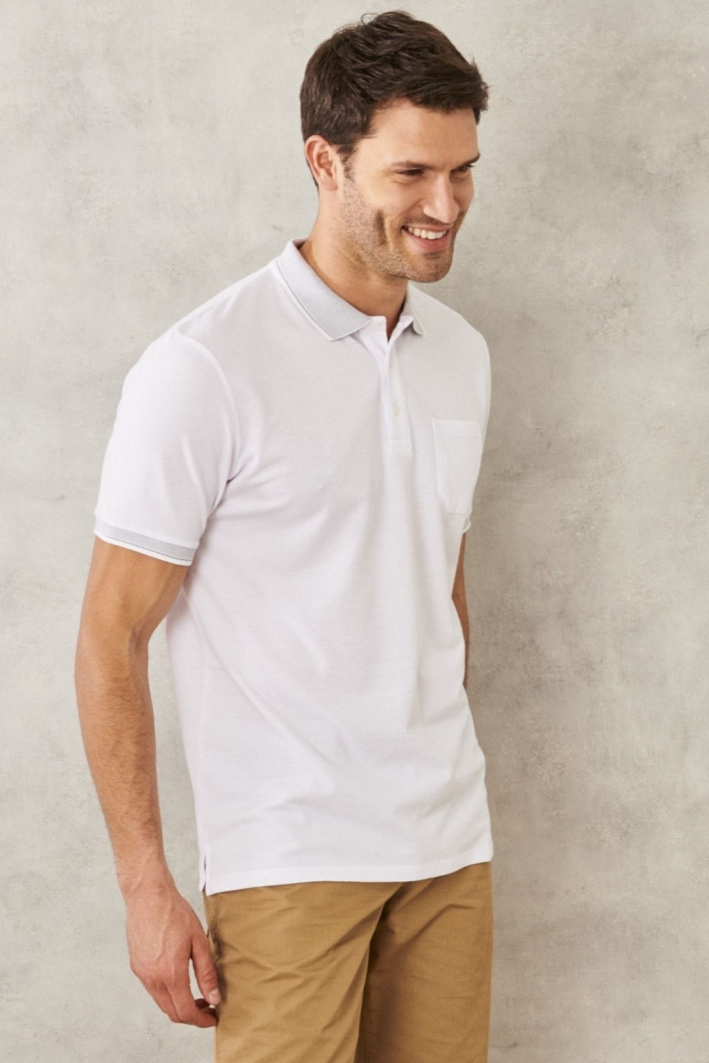 Men -Plugging Cotton Fabric Regular Fit Casual Cut White Curlled Polo Yaka Pocket T -shirt